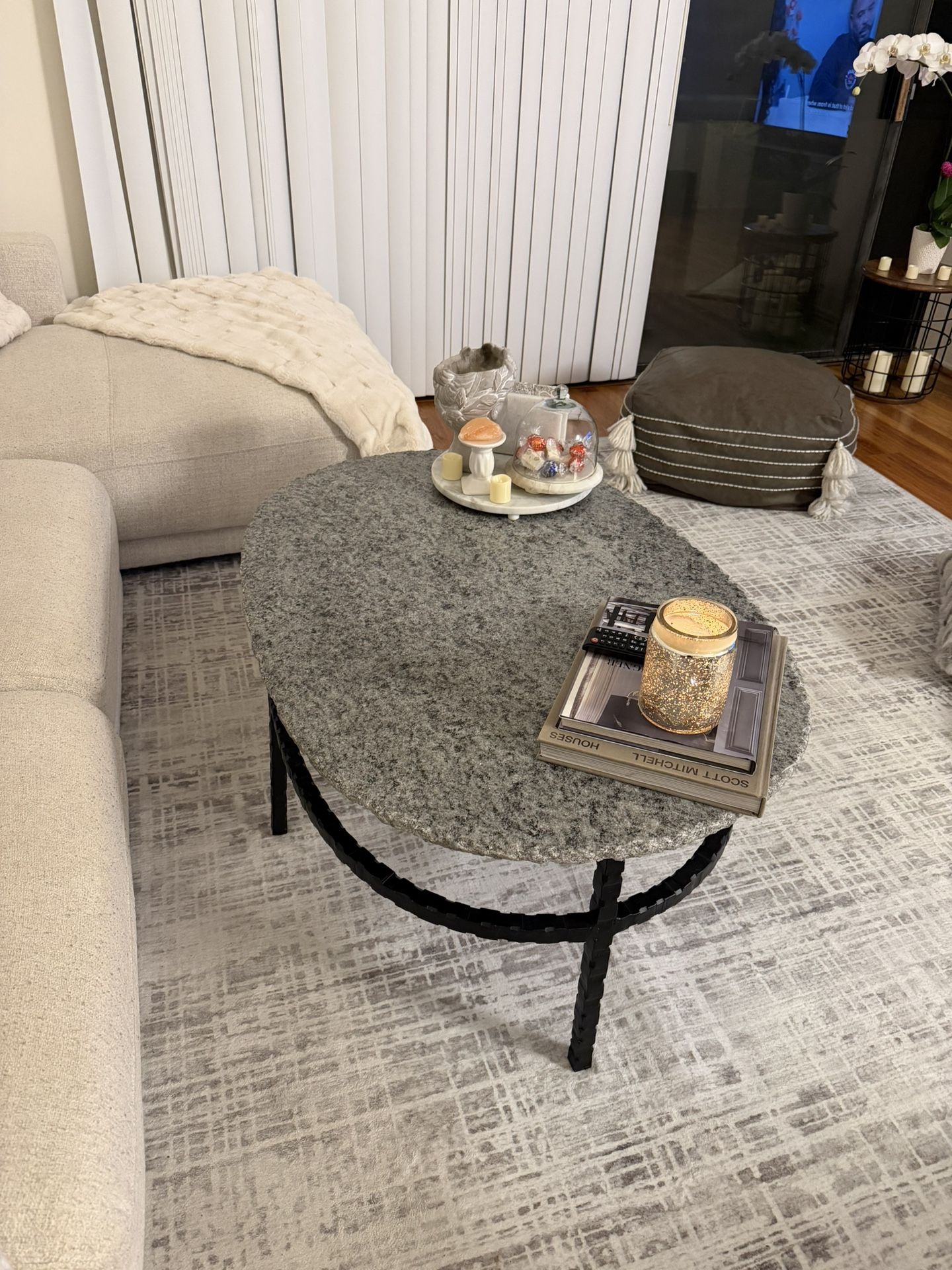 Real stone Coffee Table with solid metal base 44” L x 30” W x 18” H