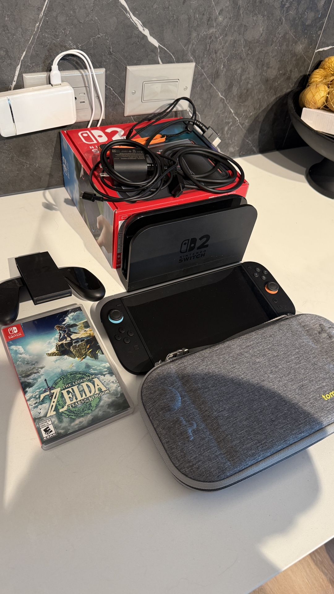 Selling perfect condition Nintendo Switch 2. It has only been used less than a handful of times. Do not have time to use it anymore. Original Box and accessories. No scratches or dents. Had a screen protector since day 1 and always in a case. Comes with a carrying case, and the following game. 1. Legend of Zelda Tears Of The Kingdom Total value of $600 plus tax. Selling it for $490 or best offer. Pick up only. No trades.