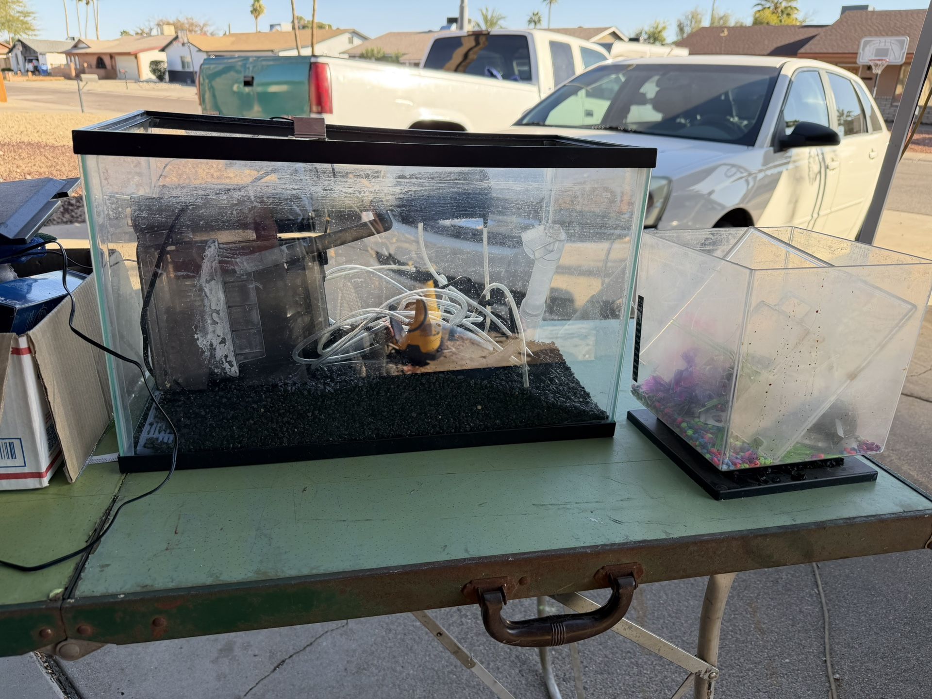 Food, gravel, everything you could think of cleaners and nuts and pumps and everything you need to get your tank running all you need is Fish. Light and a breeding tank.