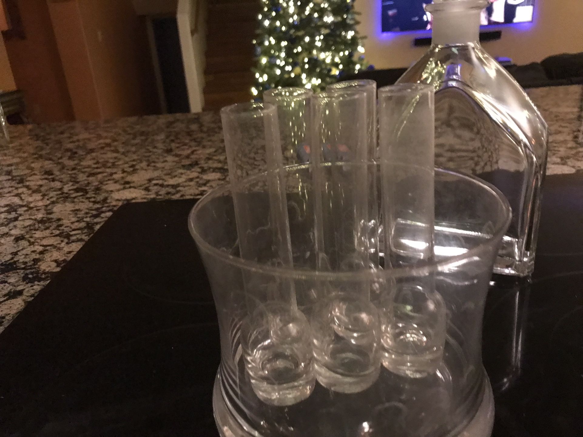 5 glass shot glasses that fit into glass ice bowl and decanter
