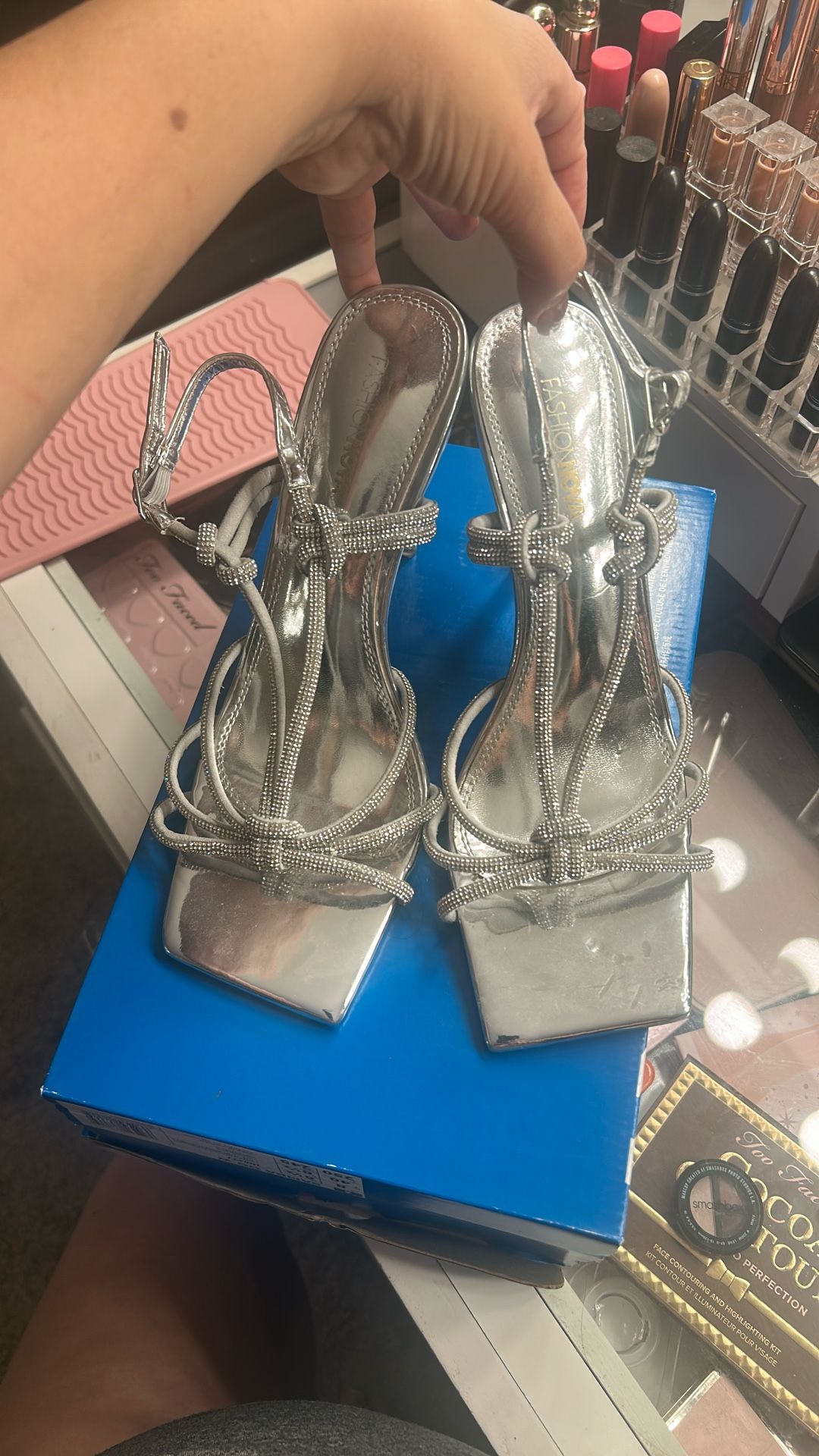 Used High Heel Rhinestone, Silver Color, Size 9 Good Condition