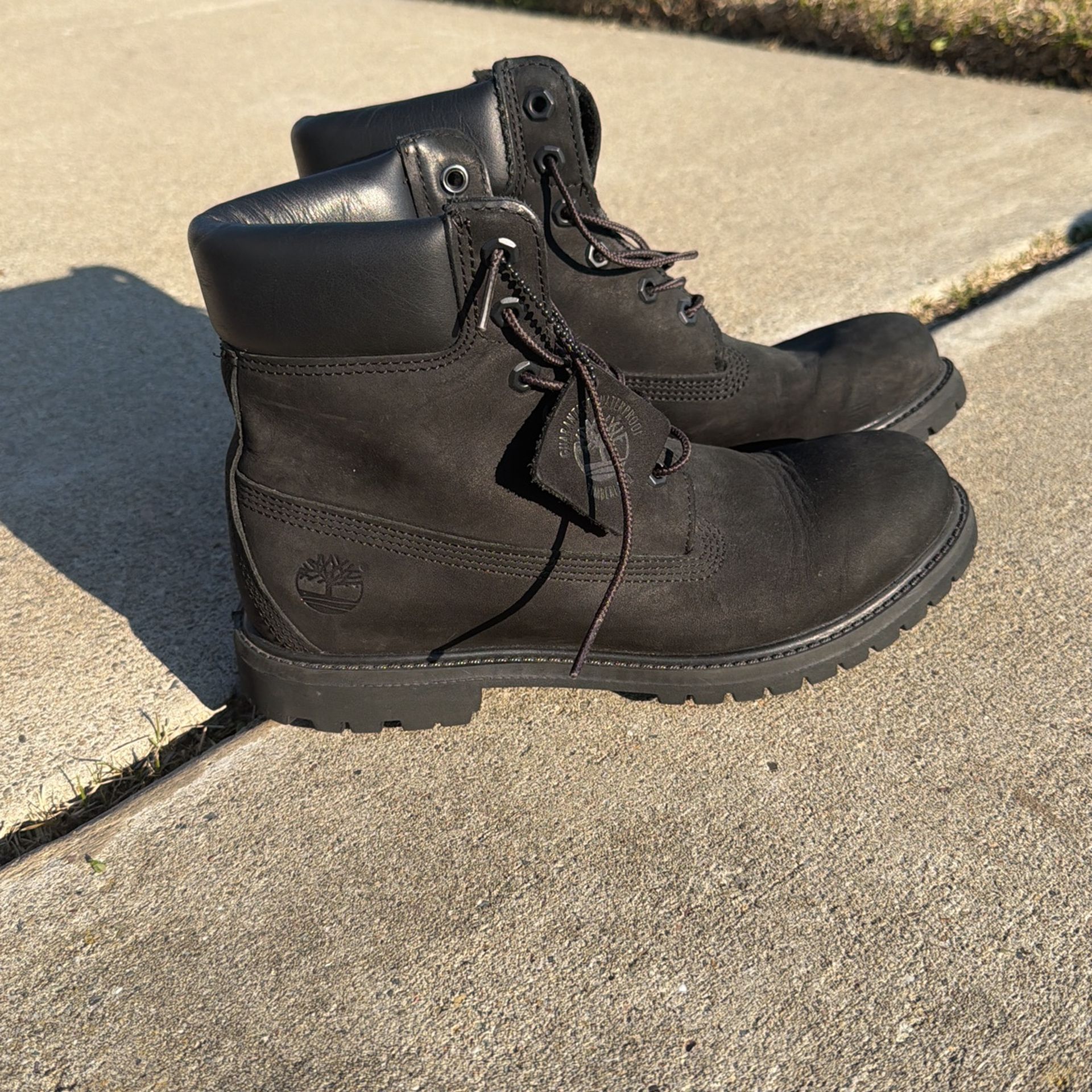 Black timberlands unisex boot, im a mens 8 fits me.
