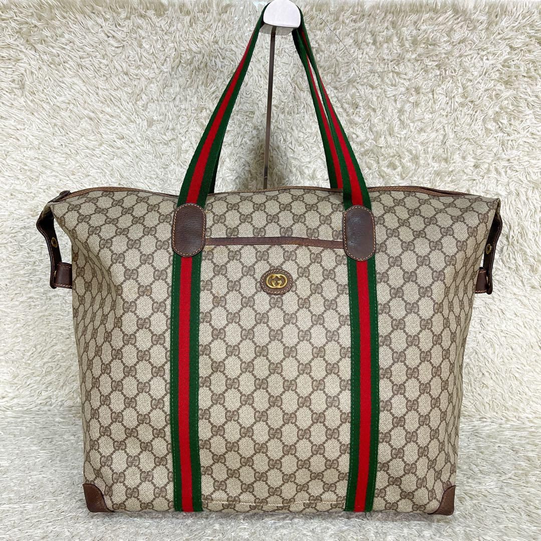 Gucci Supreme Sherry Line Travel Tote Bag 100% AUTHENTIC *Condition: Amazing! Clean inside and out. *Serial #: 012 39 6211 / 9411 *Retails $2400+ Measurements: Width 16-21in, Height 16in Handle Drop 6.5in This is a rare, stylish and trendy Gucci XL tote that's perfect for travel or for anytime you need a huge bag. It's sturdy and versatile and will definitely get you a lot of compliments! *See photos for more details