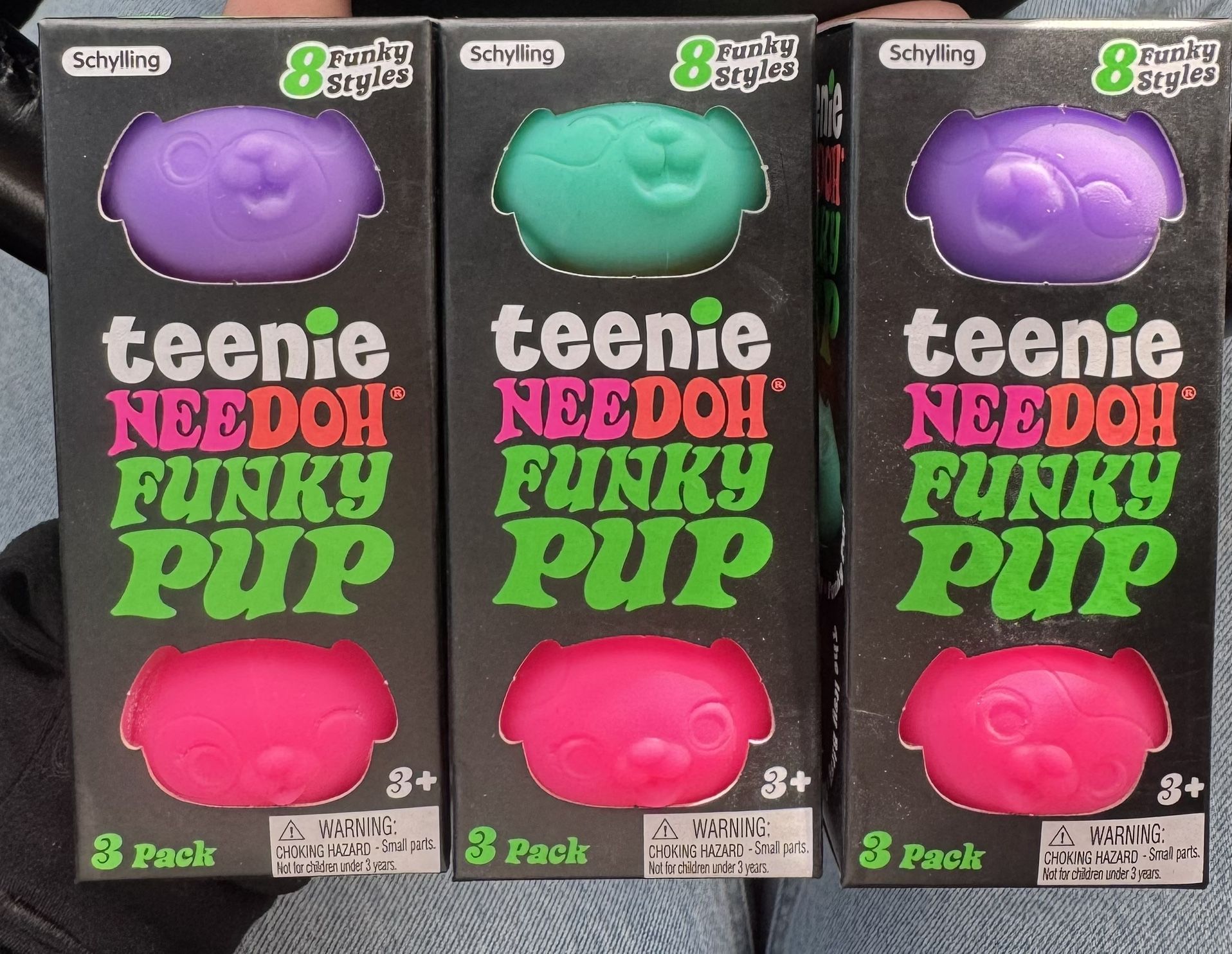 Needoh funky pup - 3 pack 1- pink, purple, orange 1- pink, orange, blue - SOLD 2- pink, purple, blue - SOLD Pick up only (mini dumplings and regular size rainbow mystery dumplings available too)