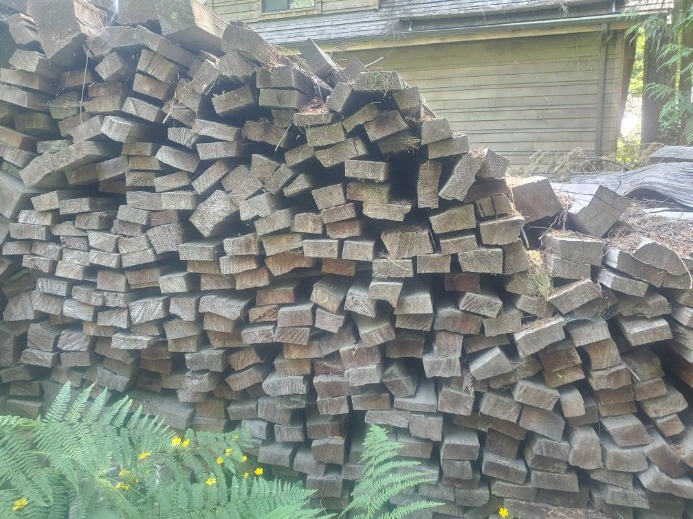 Old growth cedar fencing available. Rails are 2"x4" and come in 8ft ($10) and 10ft ($15) lengths. Posts are 4.5"x4.5" and available in 5ft ($10), 7ft ($12), 8ft ($15) and 10ft ($18) lengths. Gate posts are 6"x6"x10ft and cost $30. Posts do not have holes pre-cut. Pickup is in Index on Wednesdays, and you load and haul.