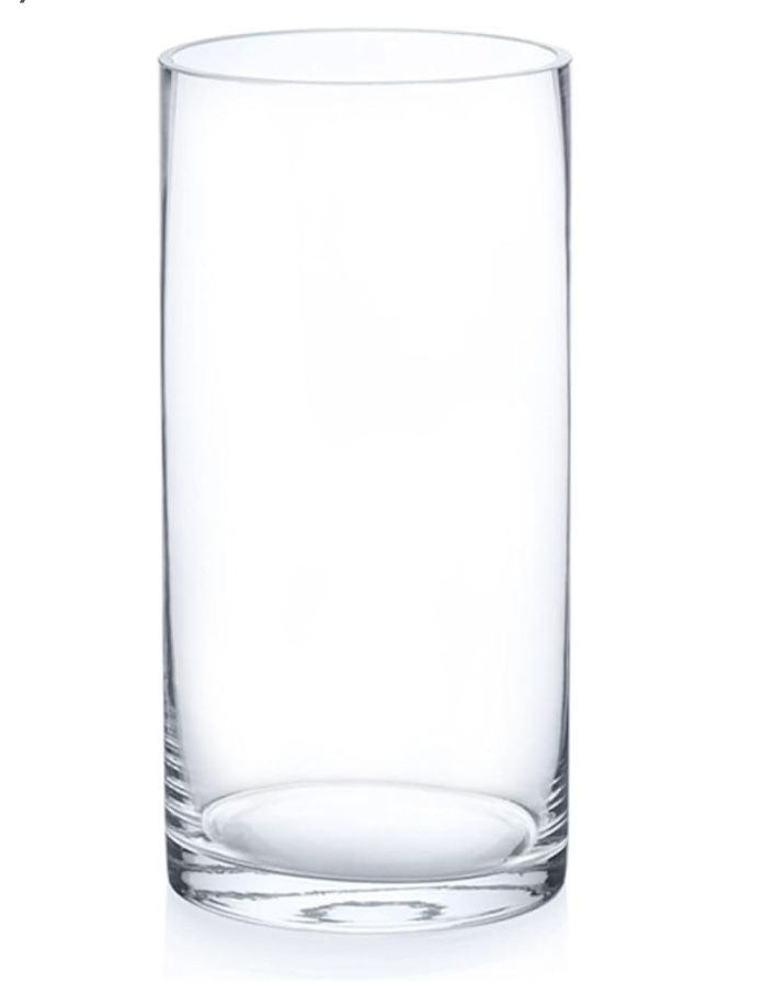 Cylinder Glass Vases, 4" W x 8" H, Quality Thick Weighted Glass One Piece