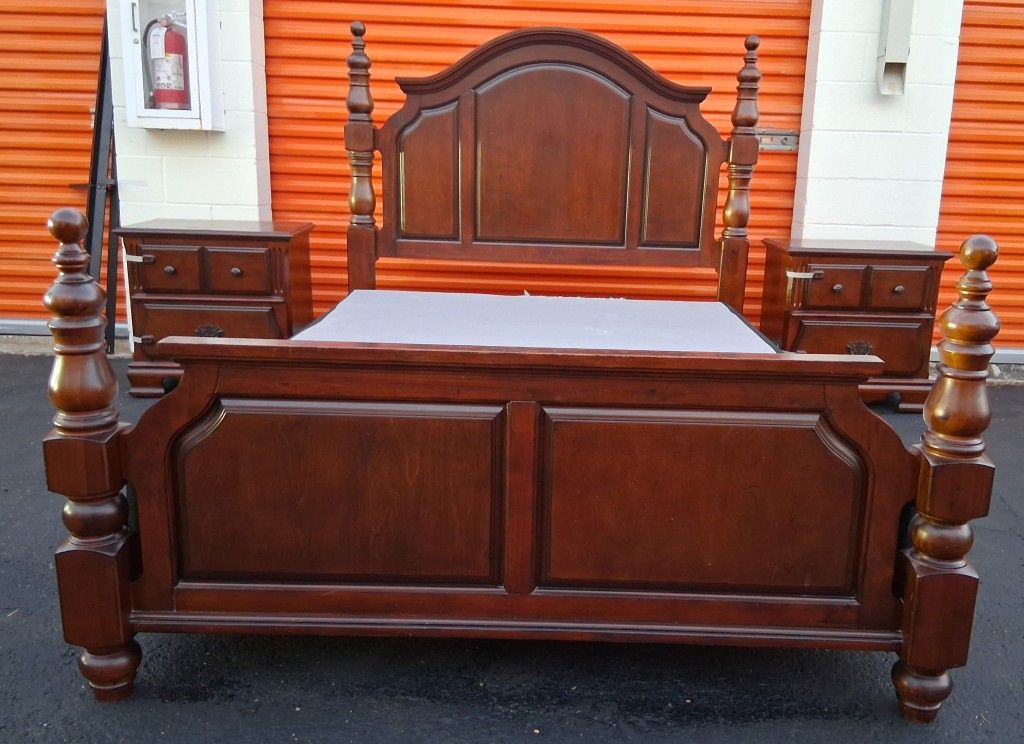 Queen size bedroom set with boxspring and nightstands Good Condition asking 640 or best offer