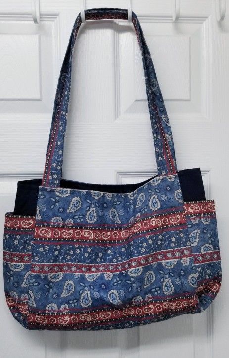 Bandana print cloth tote width 16"x height 10"x depth 3"x strap 30"x drop 18" very good condition