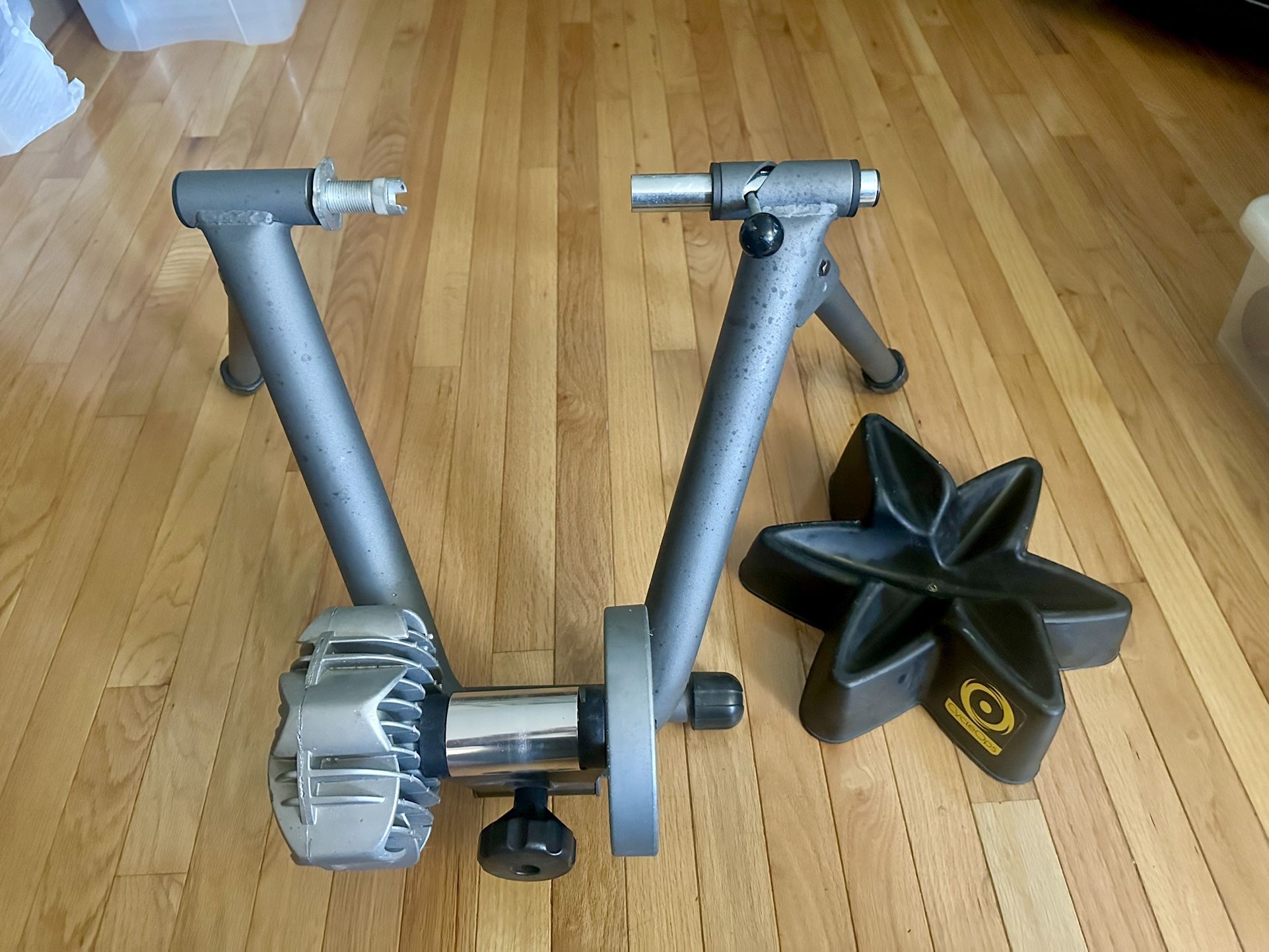 The perfect gift for someone to do indoor bike training using their own bike. Attaches to the rear hub of the bike. Adjustable tension. Wheel holder is included to help keep the bike stable. Collapses down for easy storage.