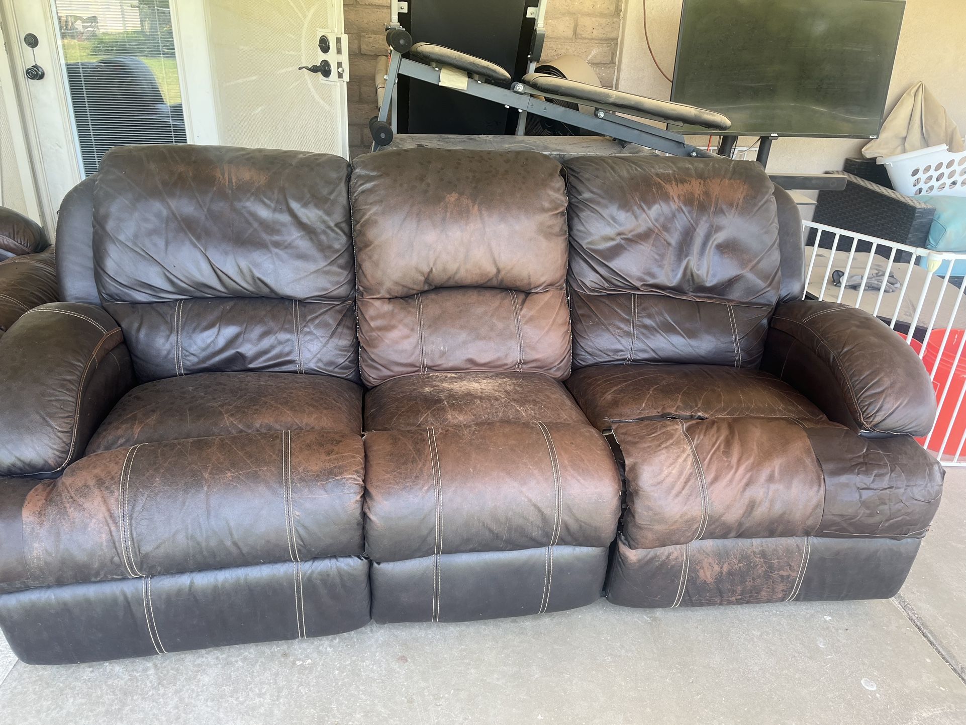 Used sofa free. Has seen better days. But still comfortable and has power recliners. Will throw in a walking treadmill
