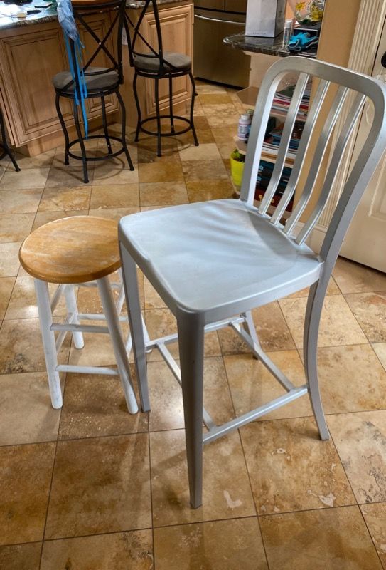 One Wooden bar stool One Metal bar stool One wooden leather swivel bar stool