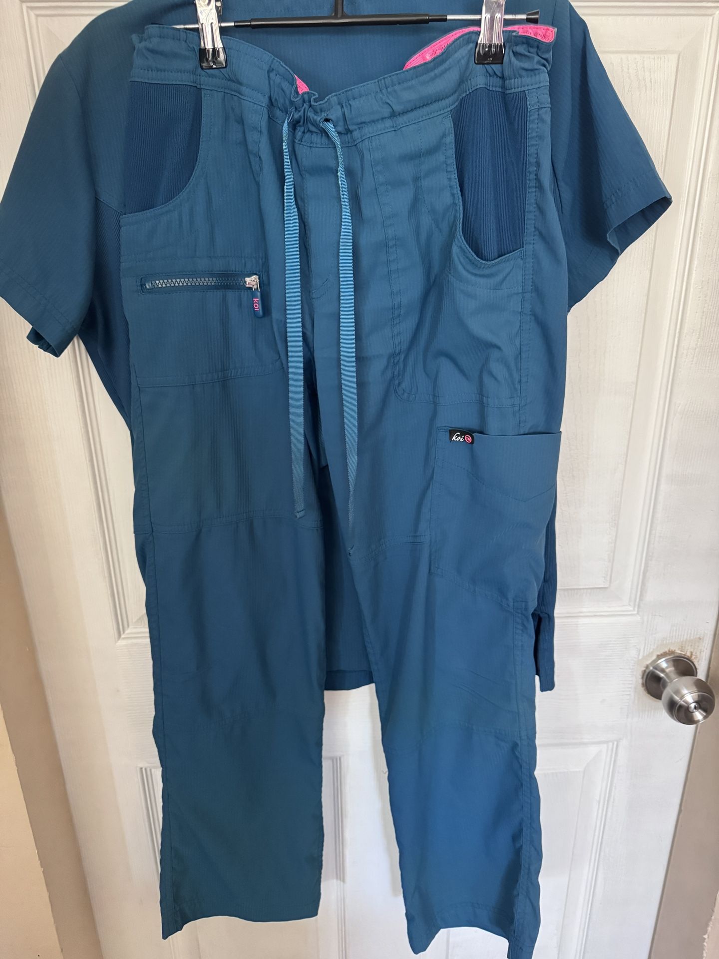 I am selling 5 pairs of medical/dental scrubs. Koi brand. Tops are all Medium. Bottoms are Petite smalls . I never dried them in dryer always hung them outside. They kept their color very well. I am selling them all for $50. If interested let me know. Thank you
