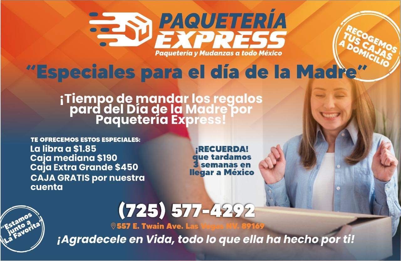 Tiempo de mandar los regalos para el día de La Madre, recuerden que tardamos 3 semanas en llegar! Especiales: La libra. $1.85 Caja mediana $190 Caja Extra Grande $450 La recogemos gratis a domicilio Y la caja es gratis Regrésale un poco de lo que ella hizo por ti! Somos Paqueteria Express! (contact info removed)
