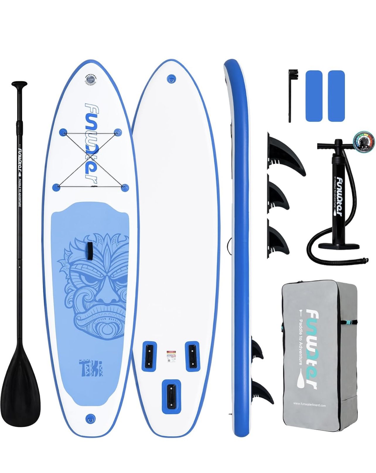 100% brand new, unopened box. All accessories shown in the pictures are included. First come first served. Inflatable Paddle Board Stand Up Paddleboards for Adults SUP with Premium Accessories Pump, Adjustable Paddle, Leash, Three Fins, Backpack