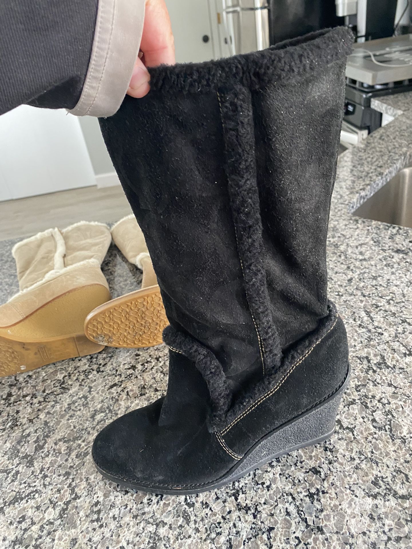 Coach Jordana Wedge Suede Shearling Trim Sz 9.5