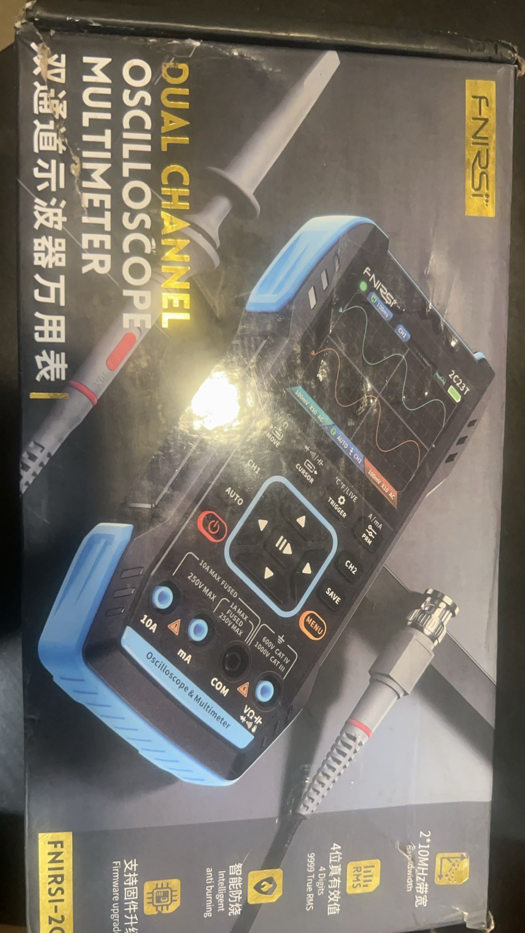 2 channel handheld oscilloscope】 10 MHz bandwidth, real-time sampling rate 50 MSa/s, record depth 32 kb, max measurement voltage 400 V, automatic measurement function, 200 mv/div-10 v/div vertical sensitivity, support waveform image storage and export 【Multimeter Mode】4-digit 10000 Counts. AC Voltage: 0-750 V, DC Voltage: 0-999.9 V, DC/AC Current: 0-9.999 A, Resistance: 0-99.99 MΩ, Capacitance: 0-99.99 mF, Diode, Continuity Measurement. An multi-function meter for professionals, schools, hobbyists 【Signal Generator】The maximum waveform output frequency can reach 2MHz and a step of 1Hz, and can output seven waveforms including sine, square, triangle, full, half, noise, and DC 【Excellent Design】The Oscilloscope adopts FPGA+MCU+ADC hardware architecture, built-in high-voltage protection module, adopts 2.8'' HD LCD display, built-in 3000mAh rechargeable battery, standby time up to 6 H, Type-C interface supports 5 V 1 A charging 【Save function】one-click save, screening function. You can upload the saved image by connecting to PC via Type-C. You can easily compare the waveforms by displaying the reference waveform and the measured waveform on the same screen