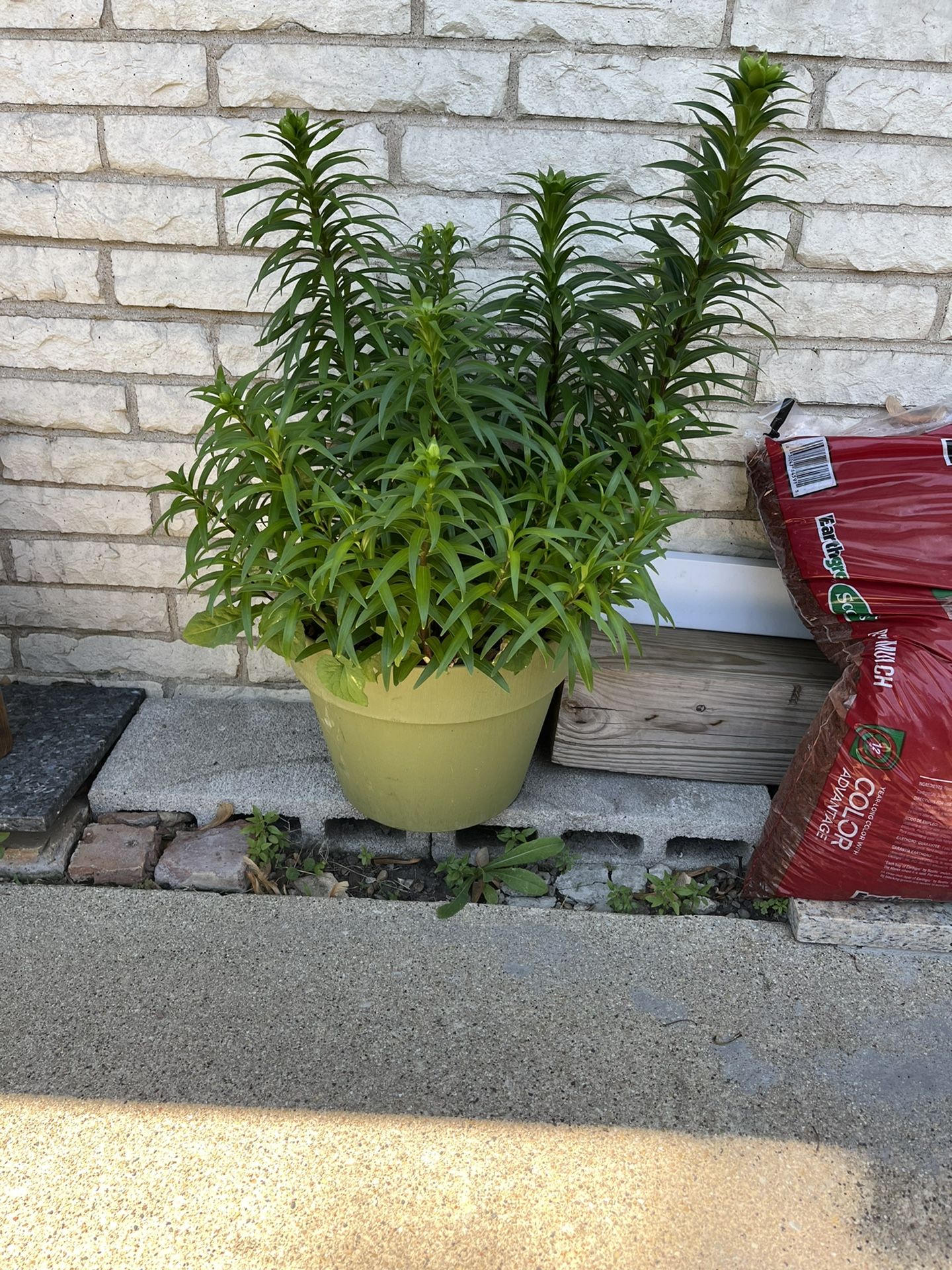 Lily plants $25 each for the ones in the black and brown pots. Wheelbarrow not included. $35 for the green potted Lily