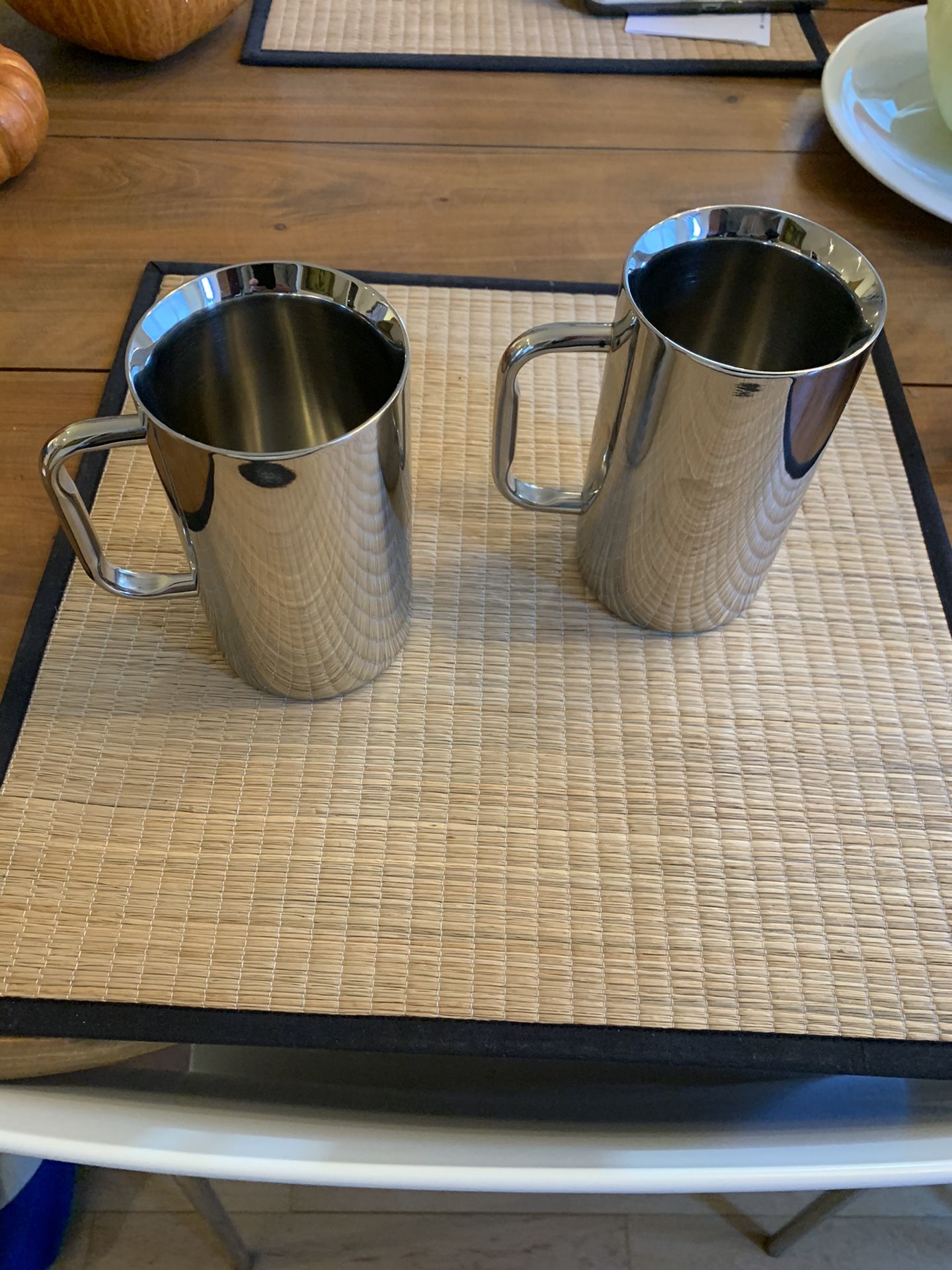William Sonoma home set of two stainless steel double walled 16 ounce mugs