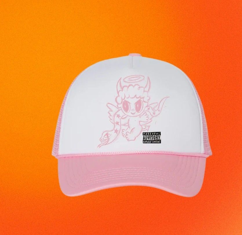Never worn,One size fits all, original price $45 Pink and white trucker hate featuring a Bichota Season graphic printed on front.