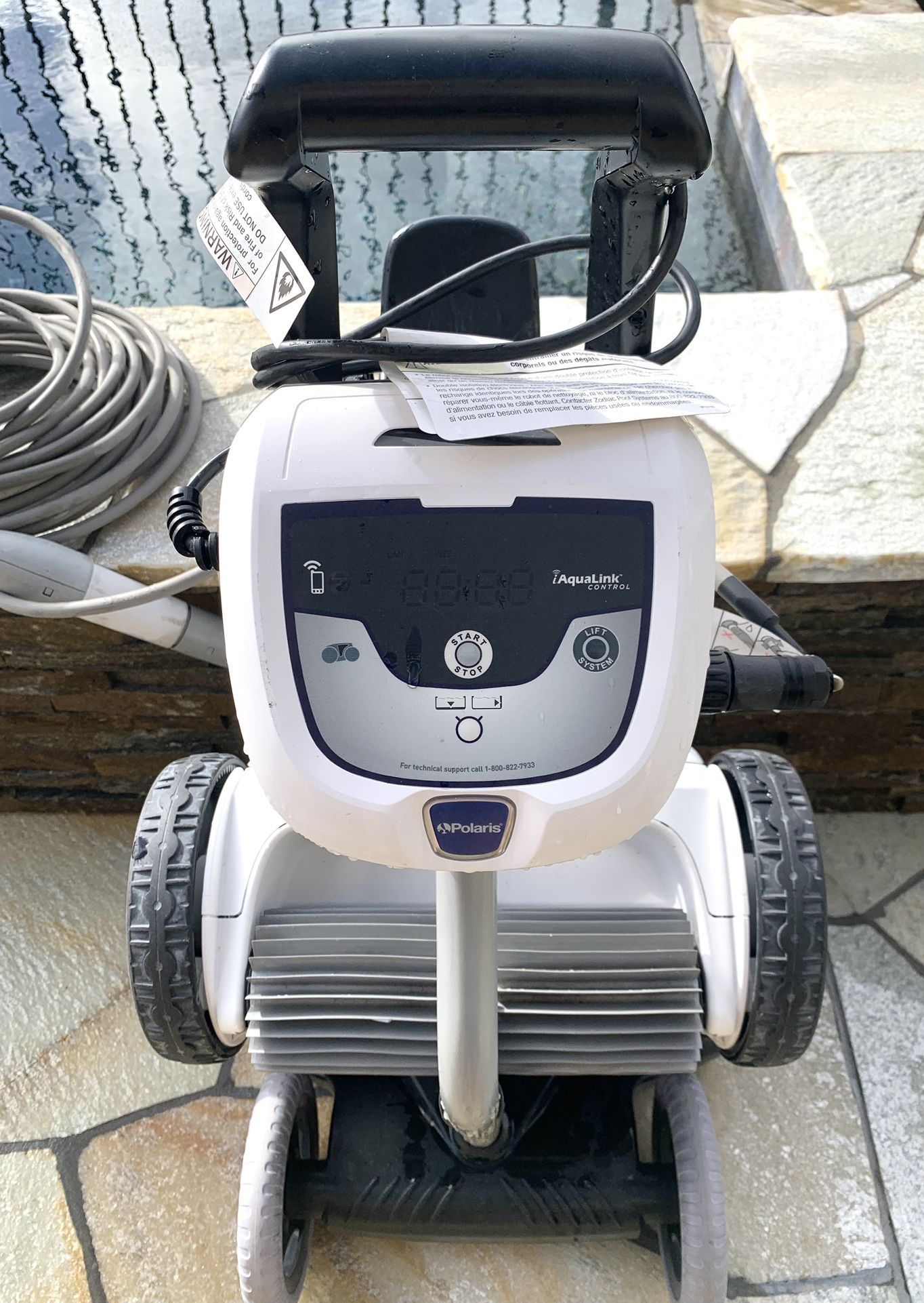 Polaris P965iQ: INTELLIGENT POOL CLEANER: Wherever you are, whenever you want -- clean your pool easily with the iAquaLink app. Comes WiFi ready and many options within the Polaris app that allow your pool to be cleaned, all from your phone. Comes w/ dirty canister indicator. IN GROUND: Compatible with in ground swimming pools up to 60 ft. MOBILE APP & WiFi: With a built-in WiFi connection that enables iAquaLink app control, the power to start or stop your pool cleaner is never further away than your phone. PREMIUM CLEANING PERFORMANCE: 4-Wheel Drive - climbs over obstacles and won’t get stuck. Low-torque watertight swivel keeps cable from tangling during operation. WHAT'S INCLUDED: Comes equipped with a 70ft cable w/ tangle-reducing swivel and an extra-large 5L debris canister. Premium caddy included. Machine works great. We purchased it new about 4 yrs ago. Used only a handful of times. Realized it’s way too much machine for the small plunge pool that we have. So we have had it in storage. Great machine, in great working order for an amazing price. New these machines are $1400. Make me an offer.