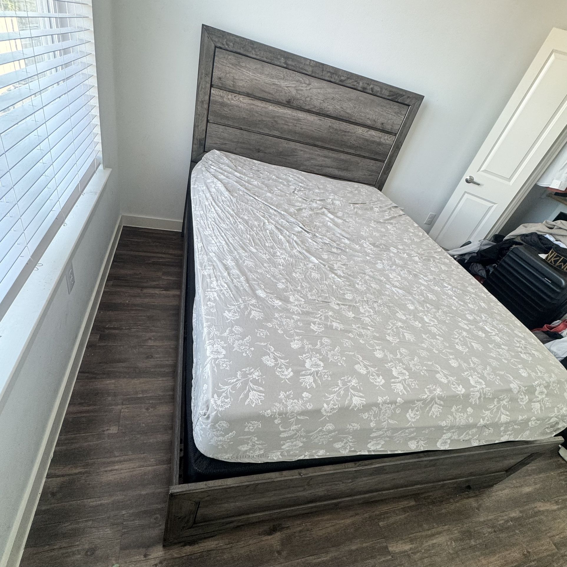 EVERYTHING MUS GO SALE !! Full queen set — mattress, box spring, and frame. Clean, good condition. NAME YOUR PRICE! Pickup only. DM if you’re ready to grab it.