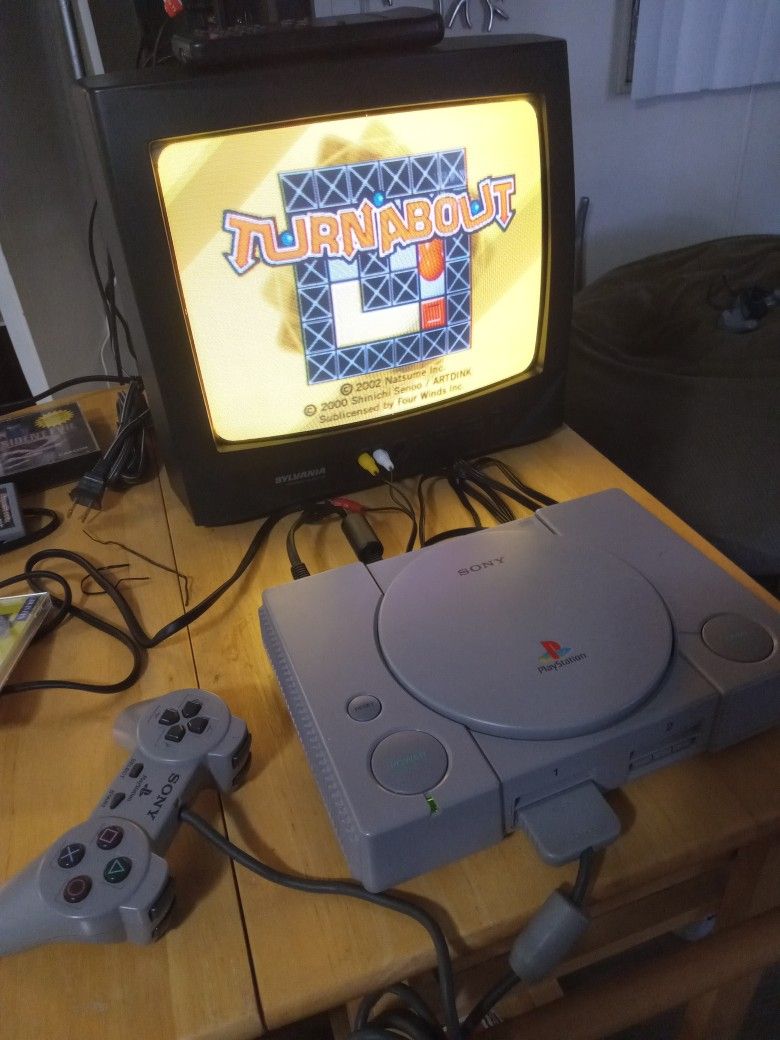 Original Ps1 with one controller and 1 game. Av cable is aftermarket. Console has some wear but color is good. $60 NO LESS NO LESS