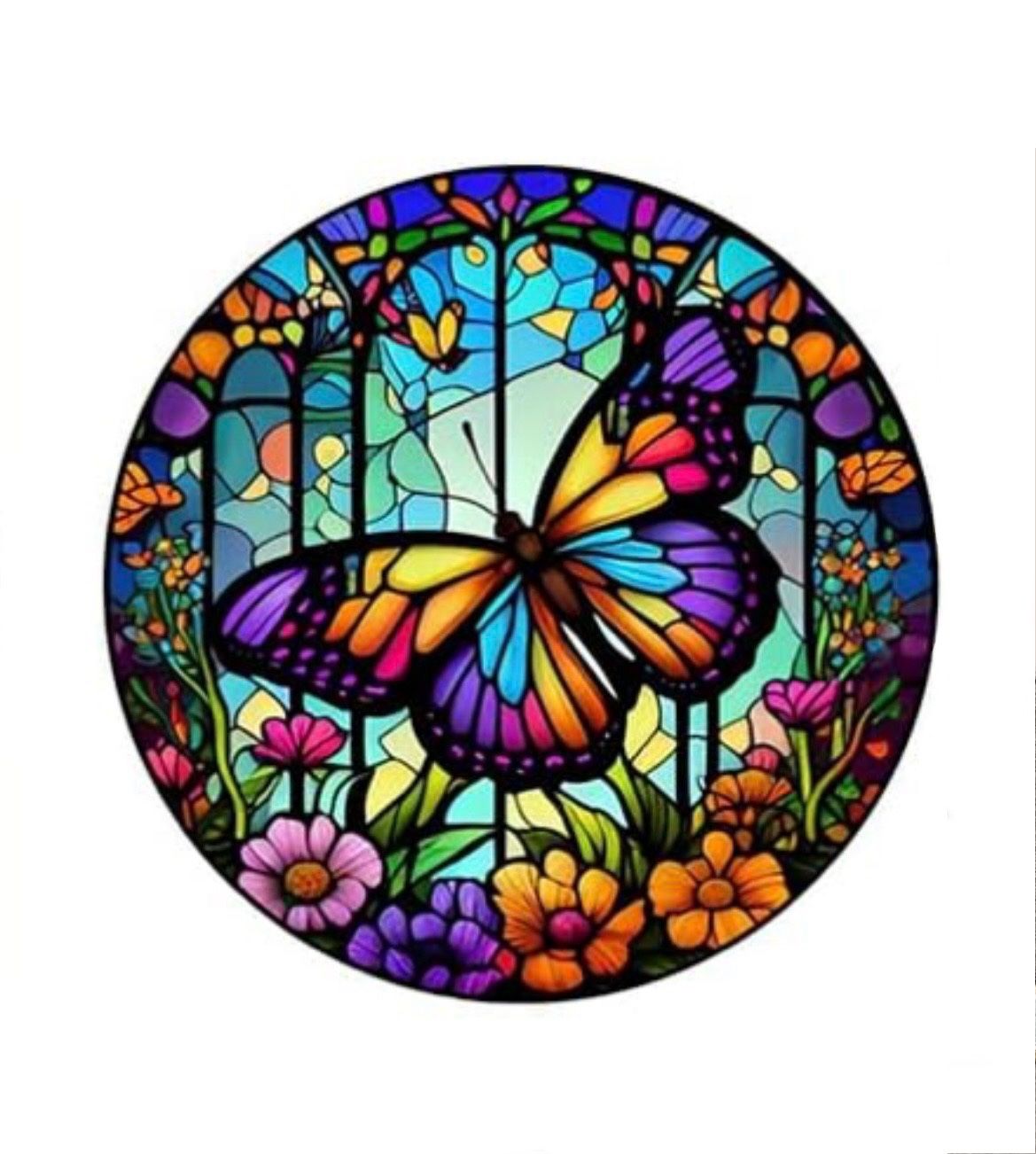 Brand New in original plastic packaging. Design is a beautiful butterfly, flowers and stained glass image. Item number is B10172 and canvas size is 35cm square. Located near Harris & Ashe for pickup. No returns.
