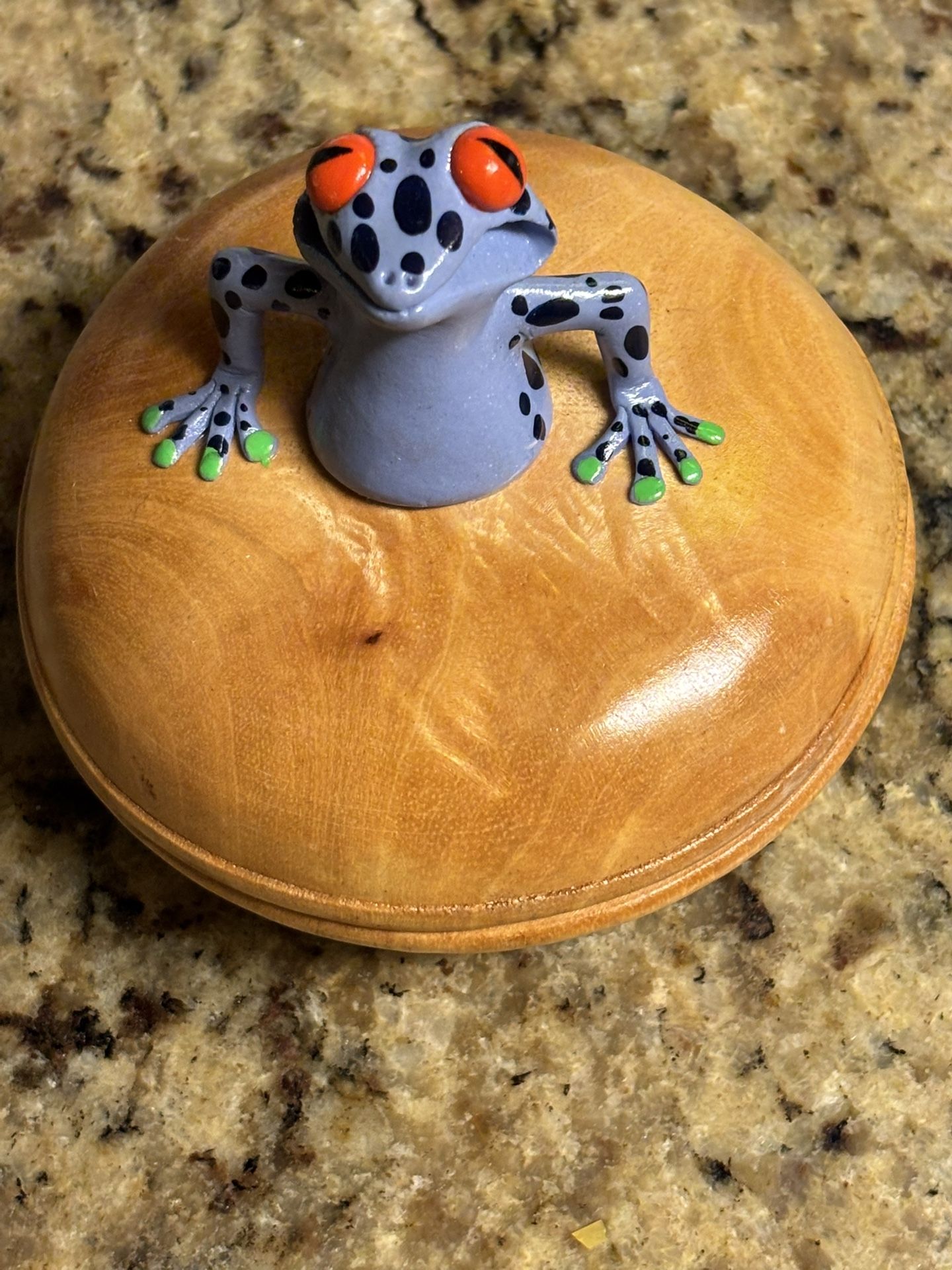 Vintage Frog Trinket Box Hand Made Wood