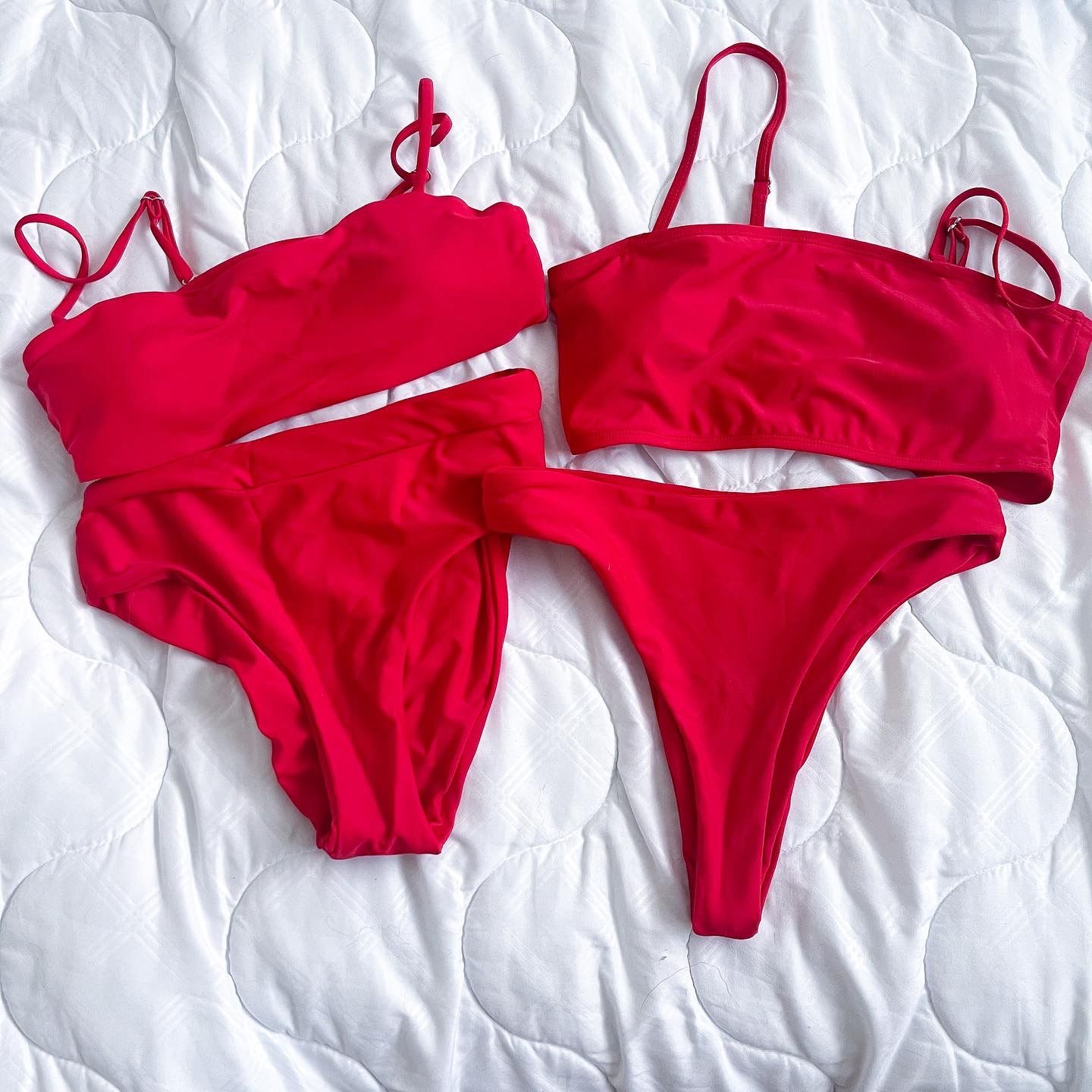 RED BIKINIS TWO PIECE W/ HIGH WAISTED BOTTOMS Size - medium Never worn $10 each // $18 both