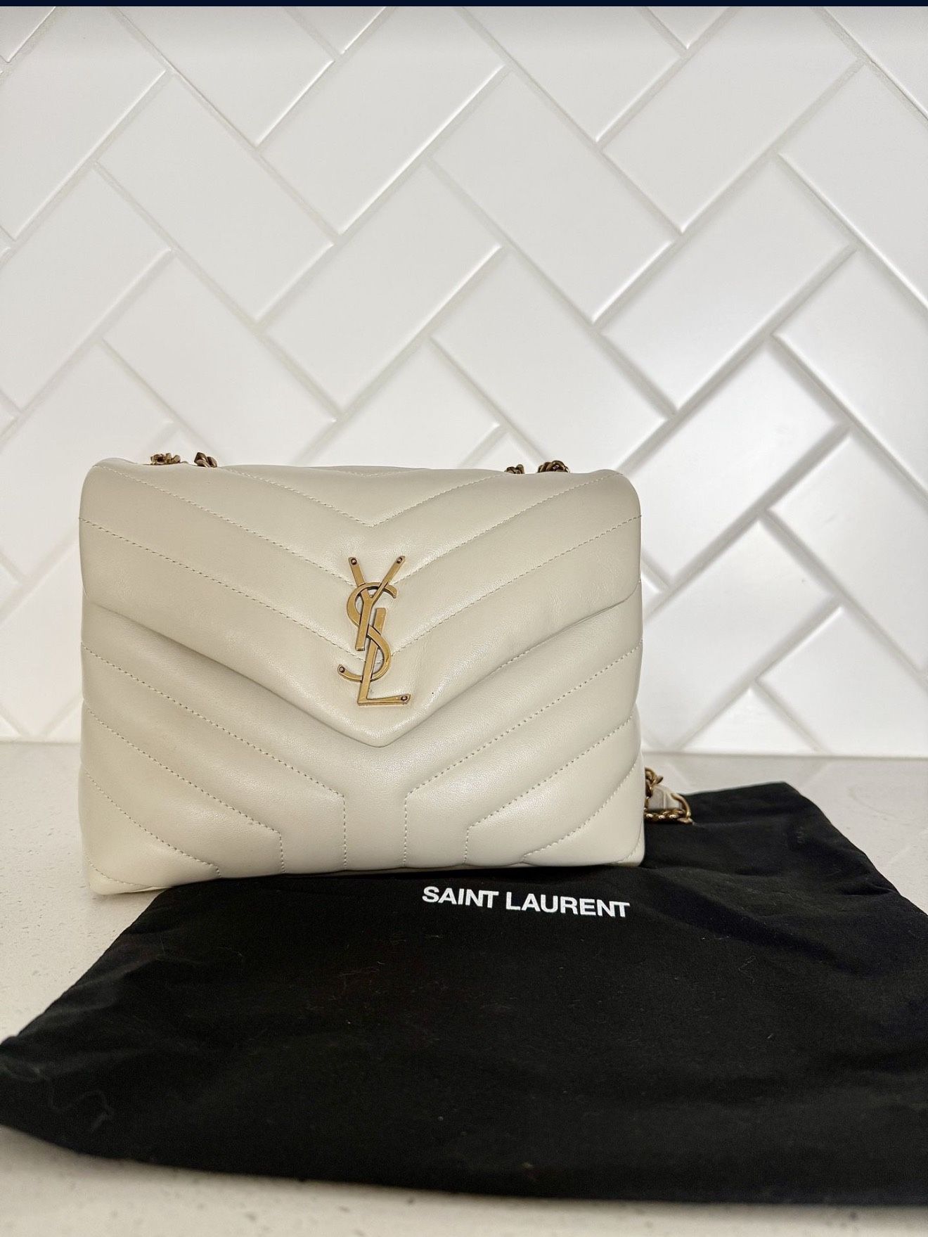 YSL Saint Laurent Loulou small leather shoulder bag purse Cream