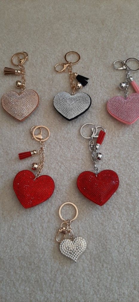 Heart-shaped keychain with rhinestones and tassel. $10. each or 2 for $15.