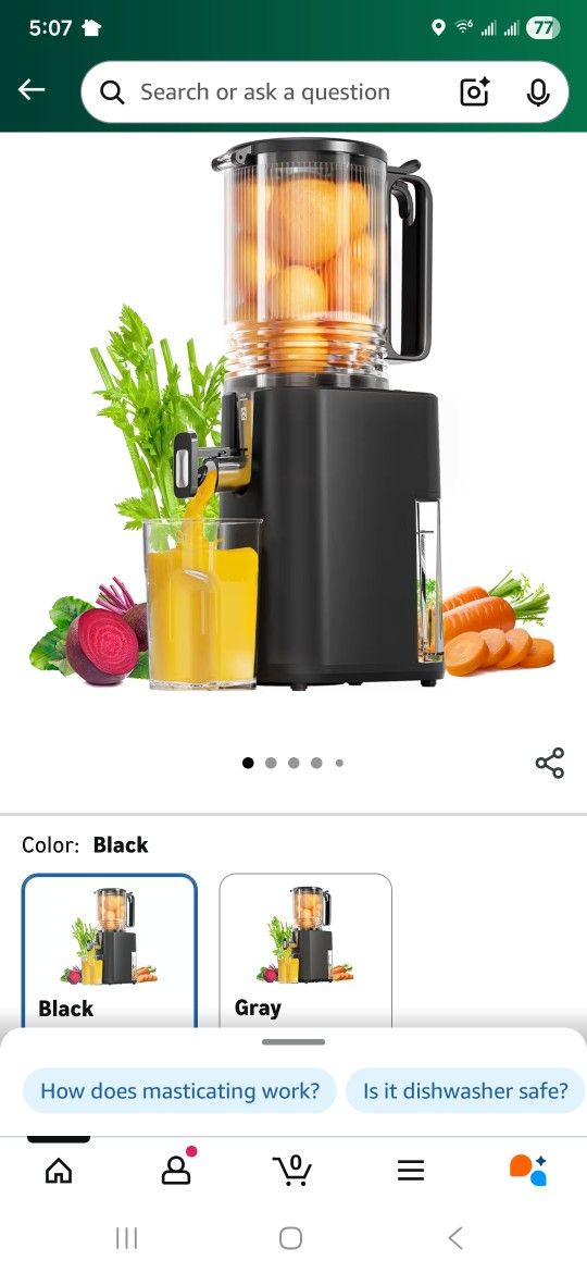 Cold Press Juicer, 5.5inch Wide Feed Chute Juicer Machine, Slow Masticating Juicer for Whole Vegetables & Fruits, Black