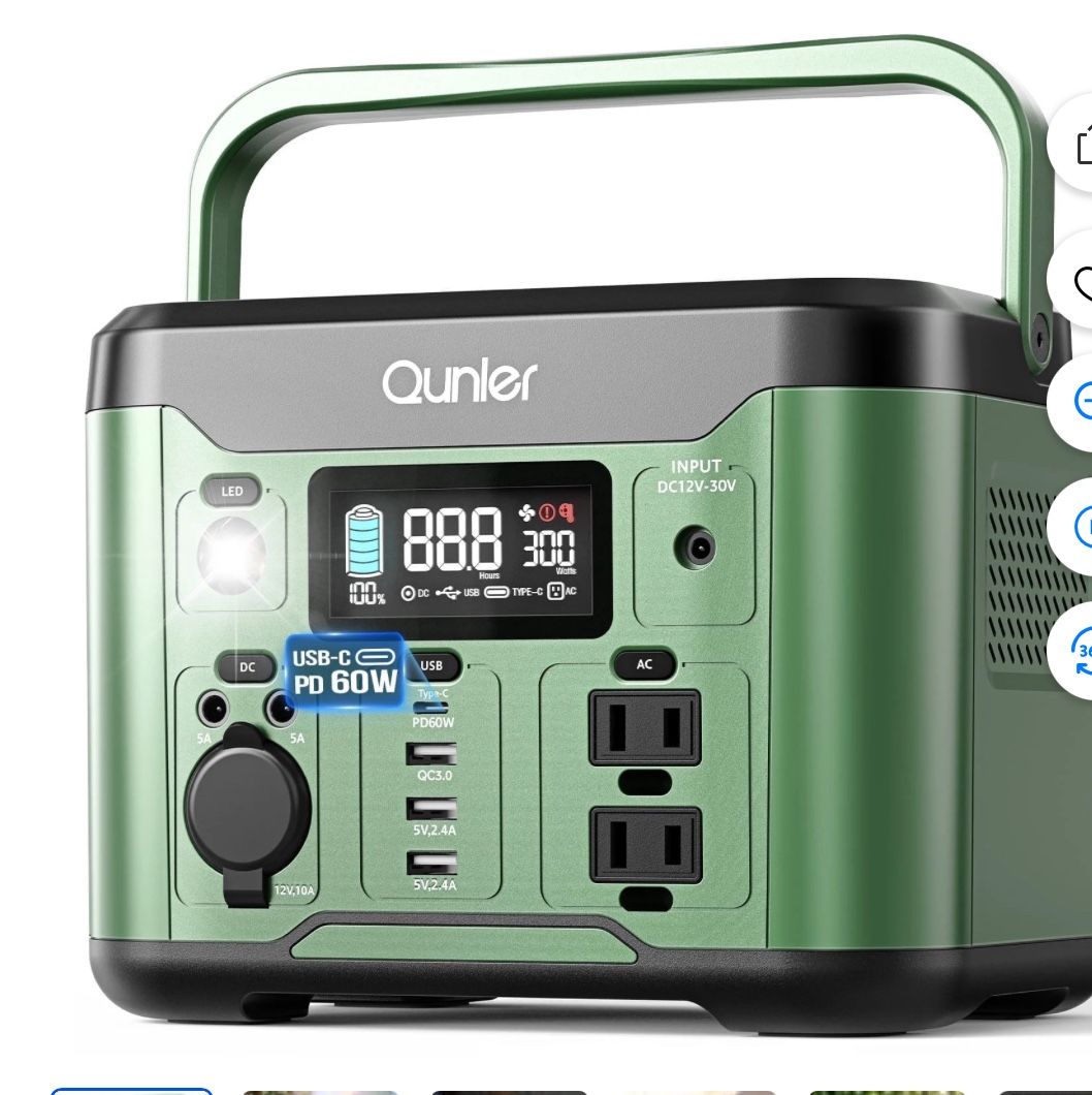 New, Qunler 300W Portable Power Station 296Wh with 120V AC, 60W PD Fast Charge, for Camping, RV, Home Emergency (No