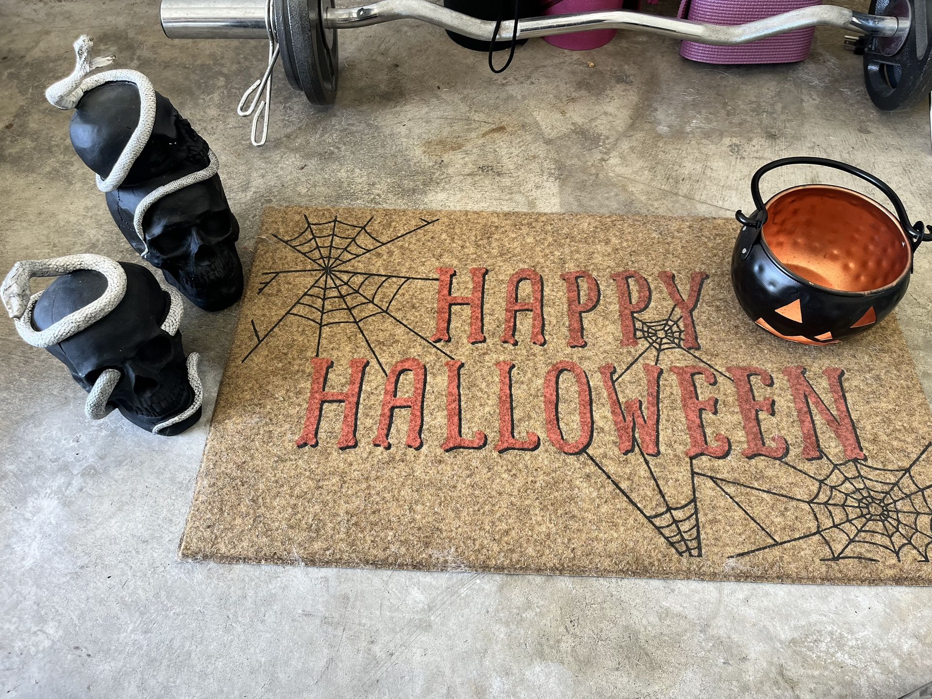 Floor Mat 2 black skulls Jack o lantern tin Bundle purchase