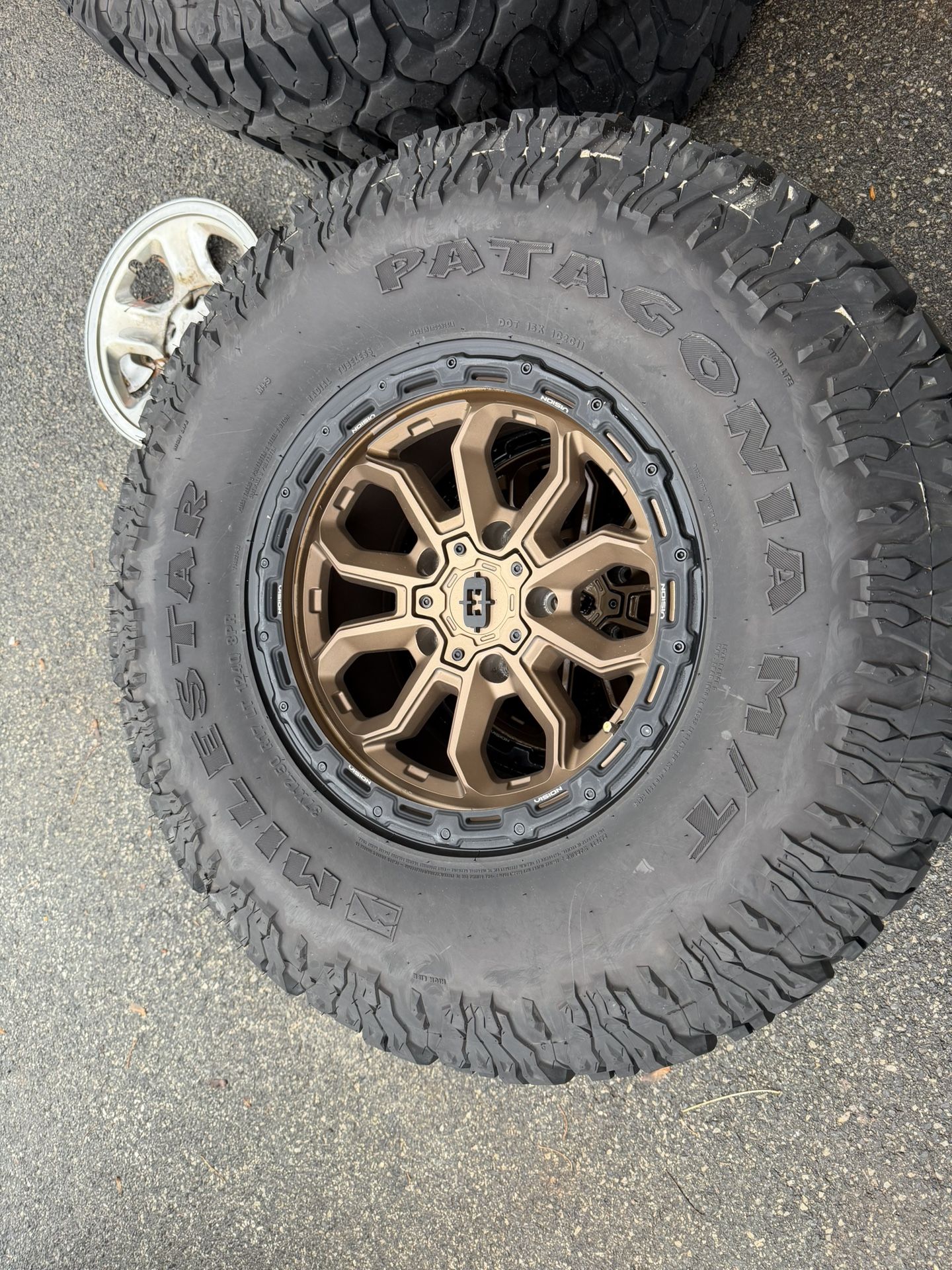 Set of Vision 405 Korupt wheels with Milestar Patagonia MT 37x12.5R17 LT tires. Wheels and tires are about a year old with roughly 8k miles on them. Tires are about 80% tread life left and wheels have absolutely no curb rash on them. Wheels and tires were mounted on a 2015 Ram 1500 with 2” wheel spacers. Bolt pattern is 5x5.5”. May fit other vehicles. Asking $1400 or best offer. Combo is over 3k new so no low ball offers.