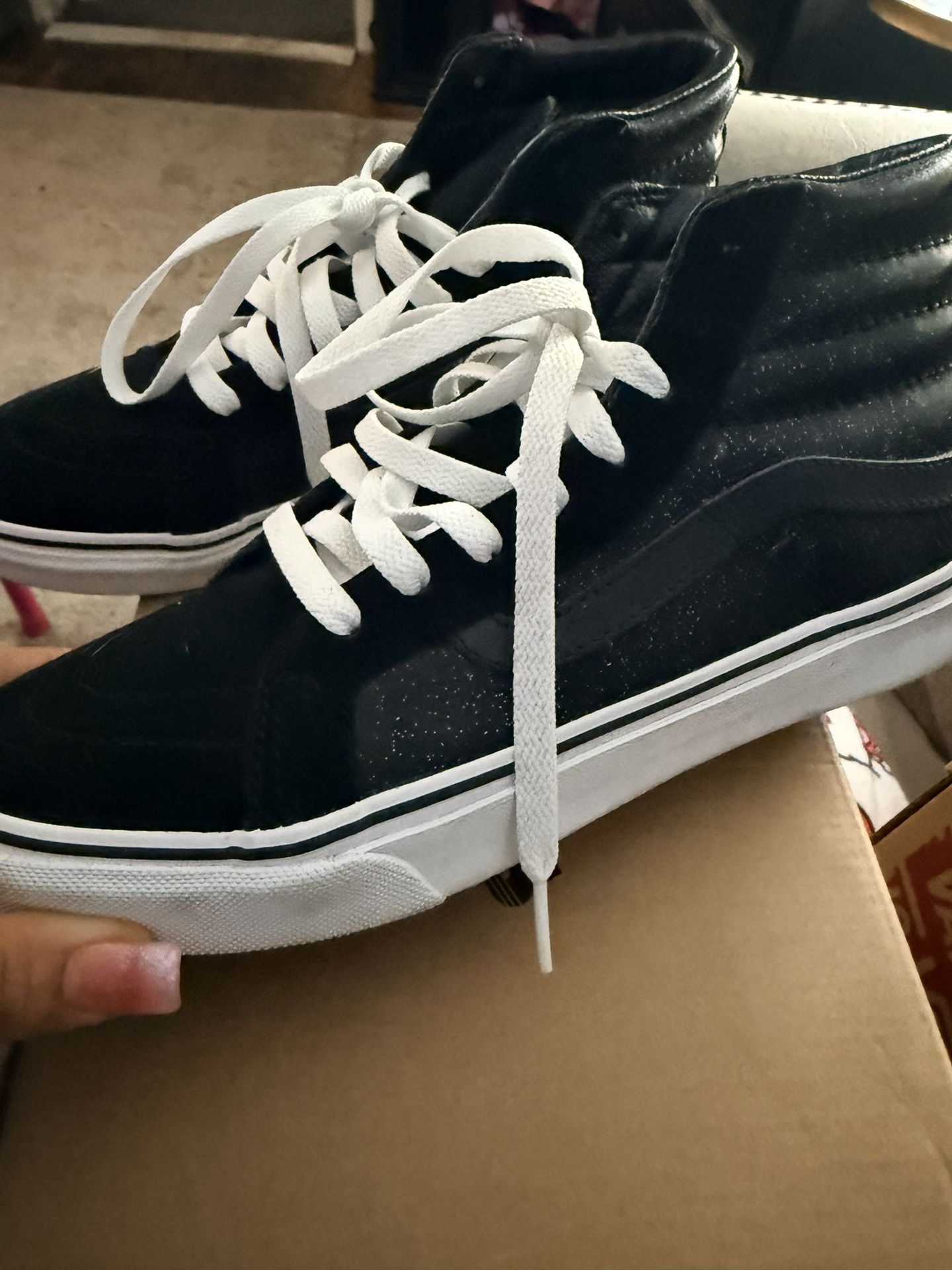 Selling high top glitter vans. Used only 1x. They don’t sell these anymore. Size men 6.0 some 7.5, however I’m a size 8.5 and they fit.