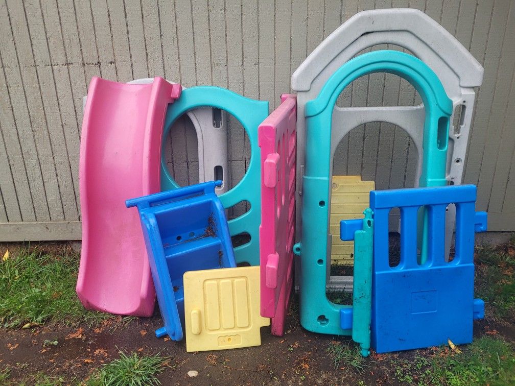 Kids outgrew and no longer need. Disassembled and ready for pickup. Does not have hardware snaps into place. Can not deliver. $60. Need gone asap. Fcfs. Will need to be washed as it's been outside. Might possibly be wet for pickup depending on weather as it's currently outside. Xposted. Pickup in orchards near 5 corners. Pickup weekdays 8am-4pm