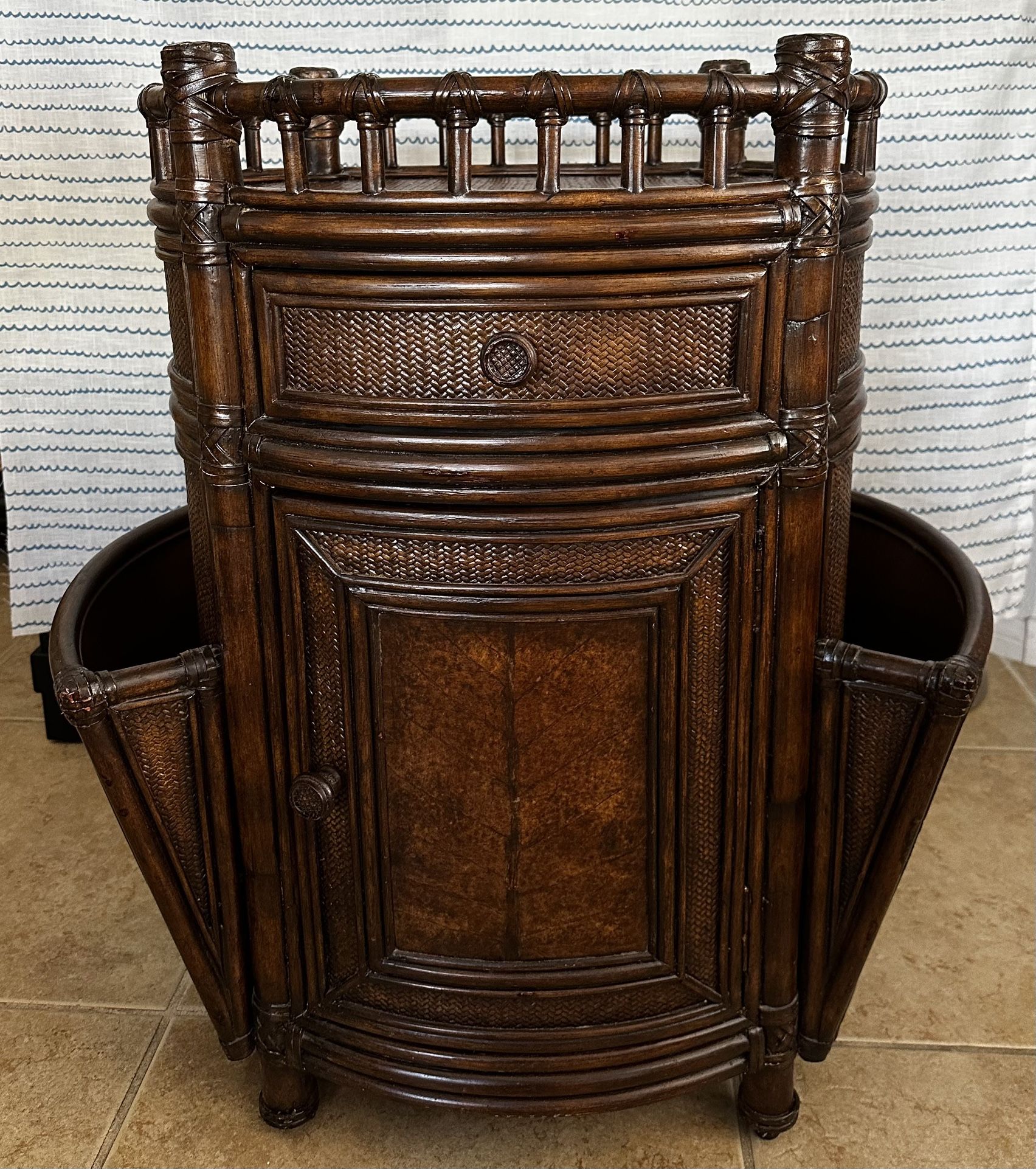 Vintage Hooker Furniture “Seven Seas” Bamboo Rattan Cabinet Nightstand/Side Table w/ Magazine Racks – Boho Tropical Style