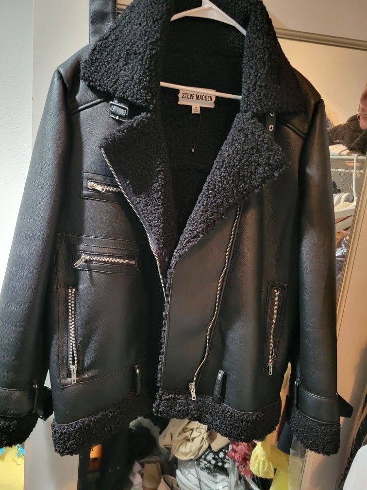 Womans black sherpa jacket Worn 1 time only Medium size Fits me big $80