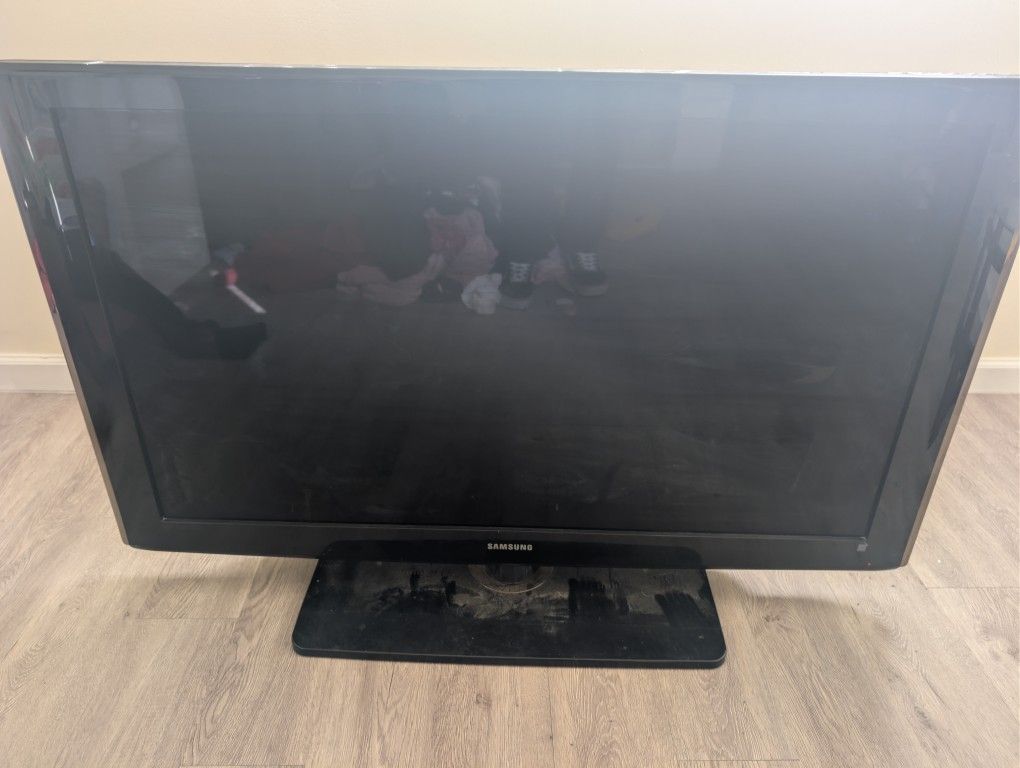 50-in Samsung TV. A smart TV. Comes with remote. Has bubbles at bottom of screen as seen in photo. Still has good picture $20