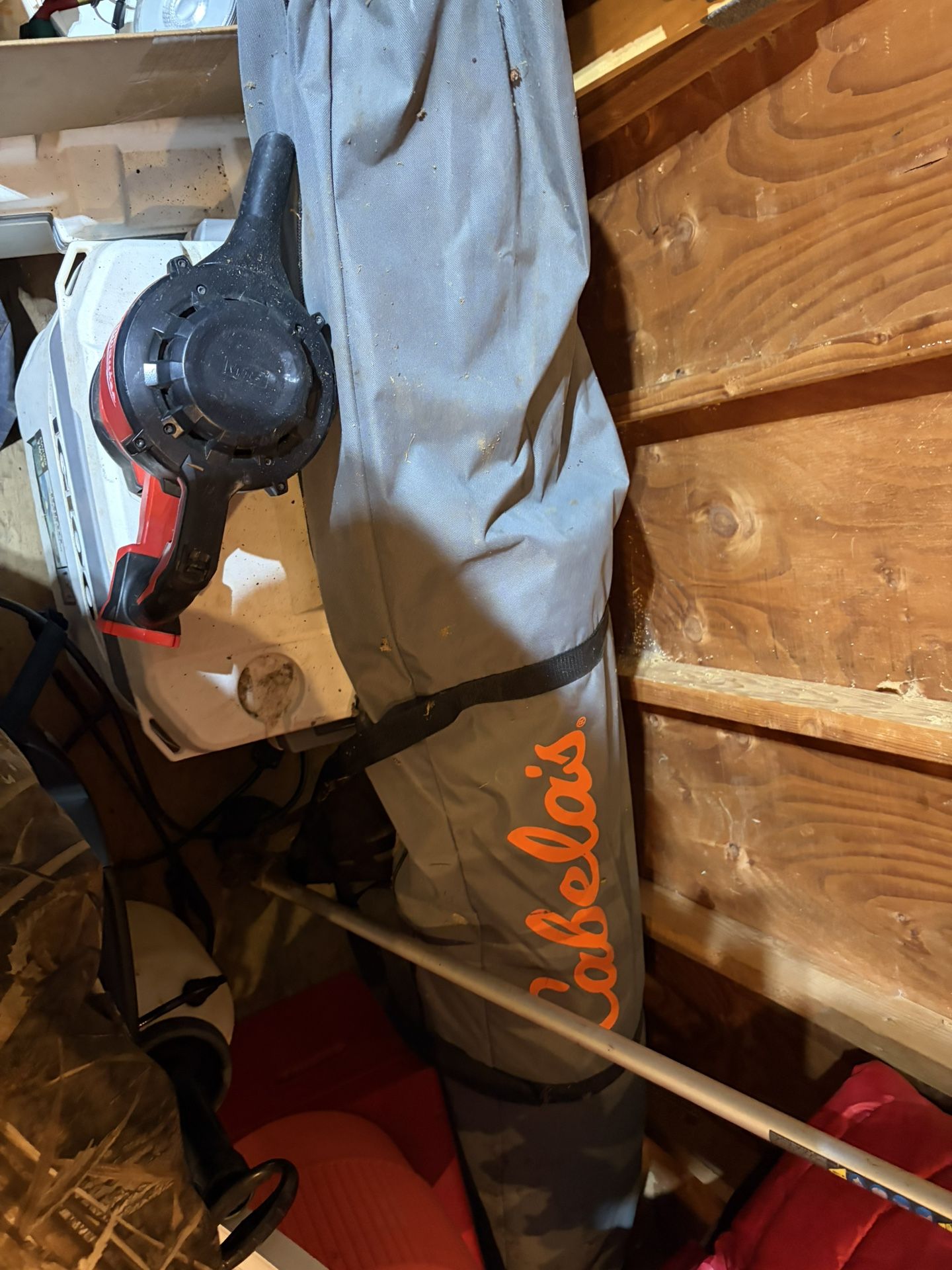 Cabela’s brand gazebo. Thing is huge only used it twice cuz I ended up getting a trailer. Been sitting in my shop. The bag itself is like probably 8 feet long. Come get it for 50 bucks my loss your gain.