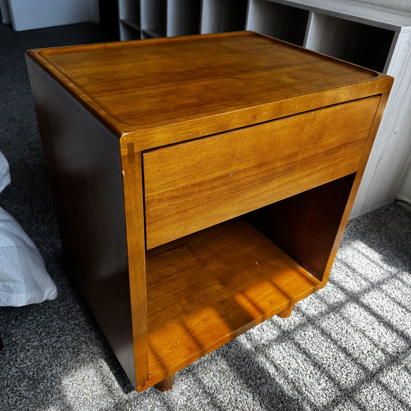 Heavy wooden night stand great quality  I have 2 both for $550