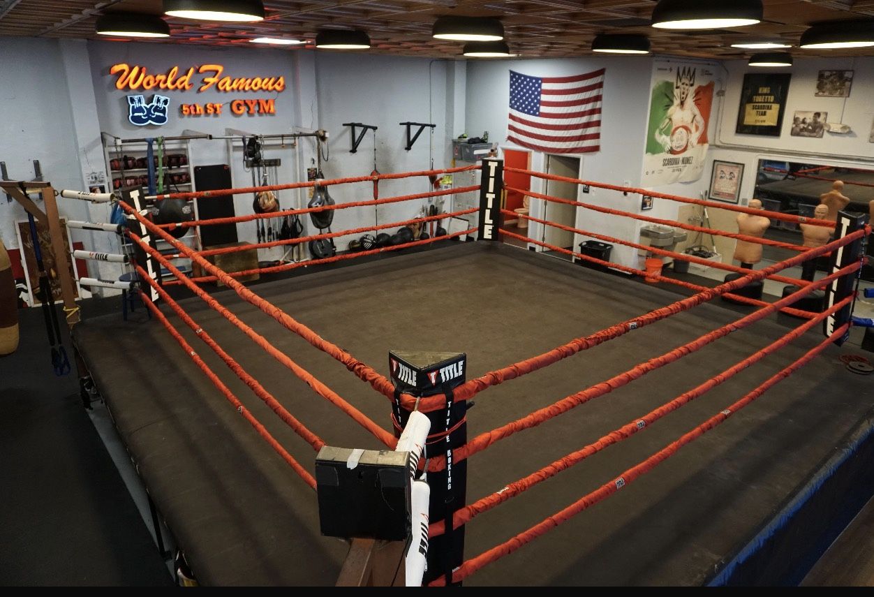 Boxing ring from the WORLD FAMOUS 5TH st GYM 20 x 20 feet . Must be dismantled ( we will guide and help you do it )