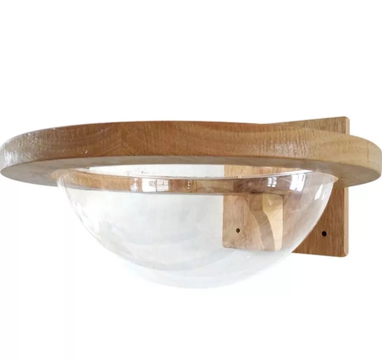 Material&Size: Wood + Acrylic; Small - 9.84"(D) Large - 11.8"(D) Capsule Thickness - 0.2". Premium Quality space clear capsule with good transparency, you can always pay attention to cat's activities. The transparent acrylic provides a secure environment by giving the cat a much wider eyesight. Mounted on the wall, allows the cat to be perched viewing from above. With the shape of a capsule, provides larger space area for pet to sleep.