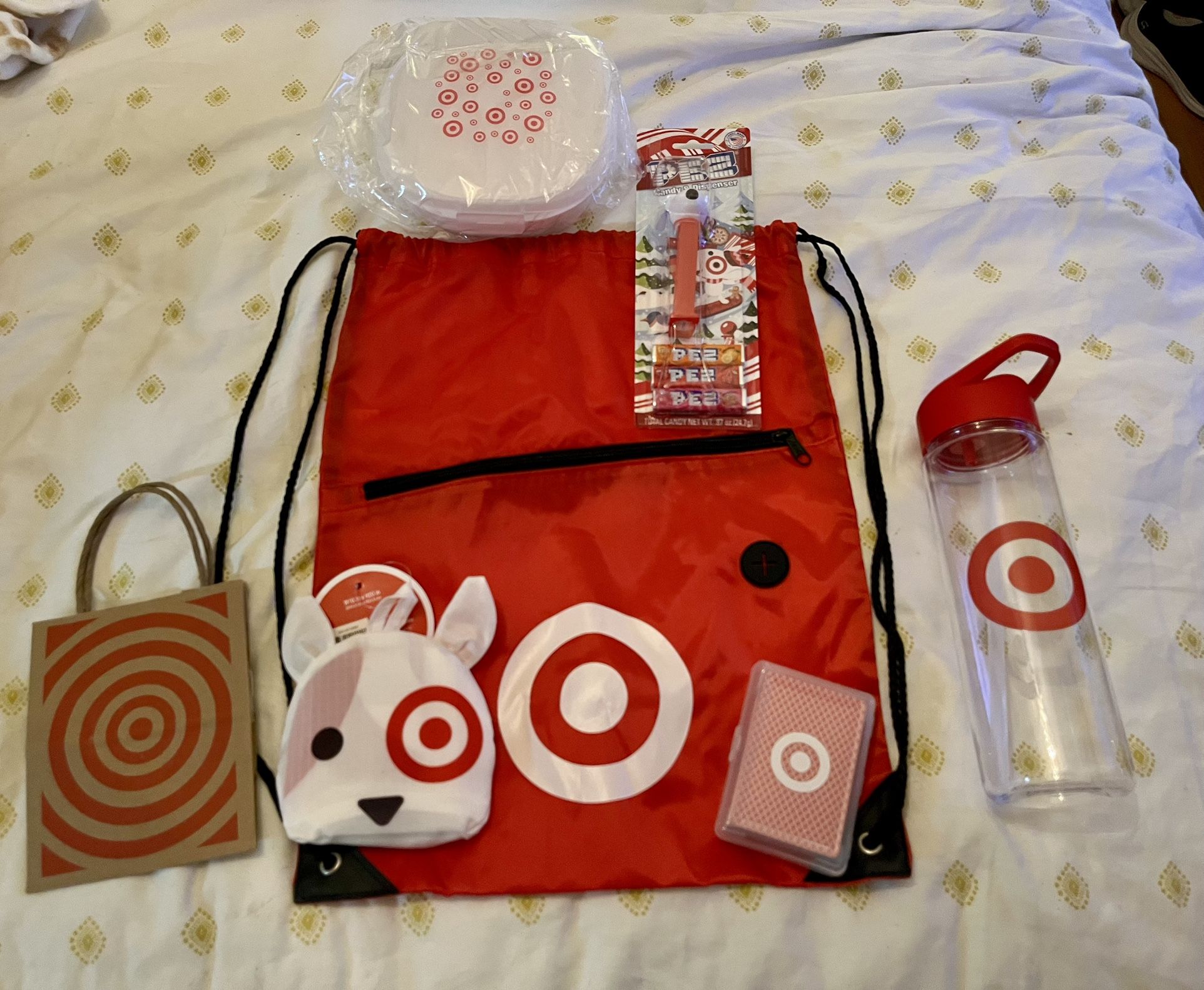 Target Backpack, Bullseye Bag, Target Deck Of Cards,Target Plastic Food Keeper Target Water Bottle