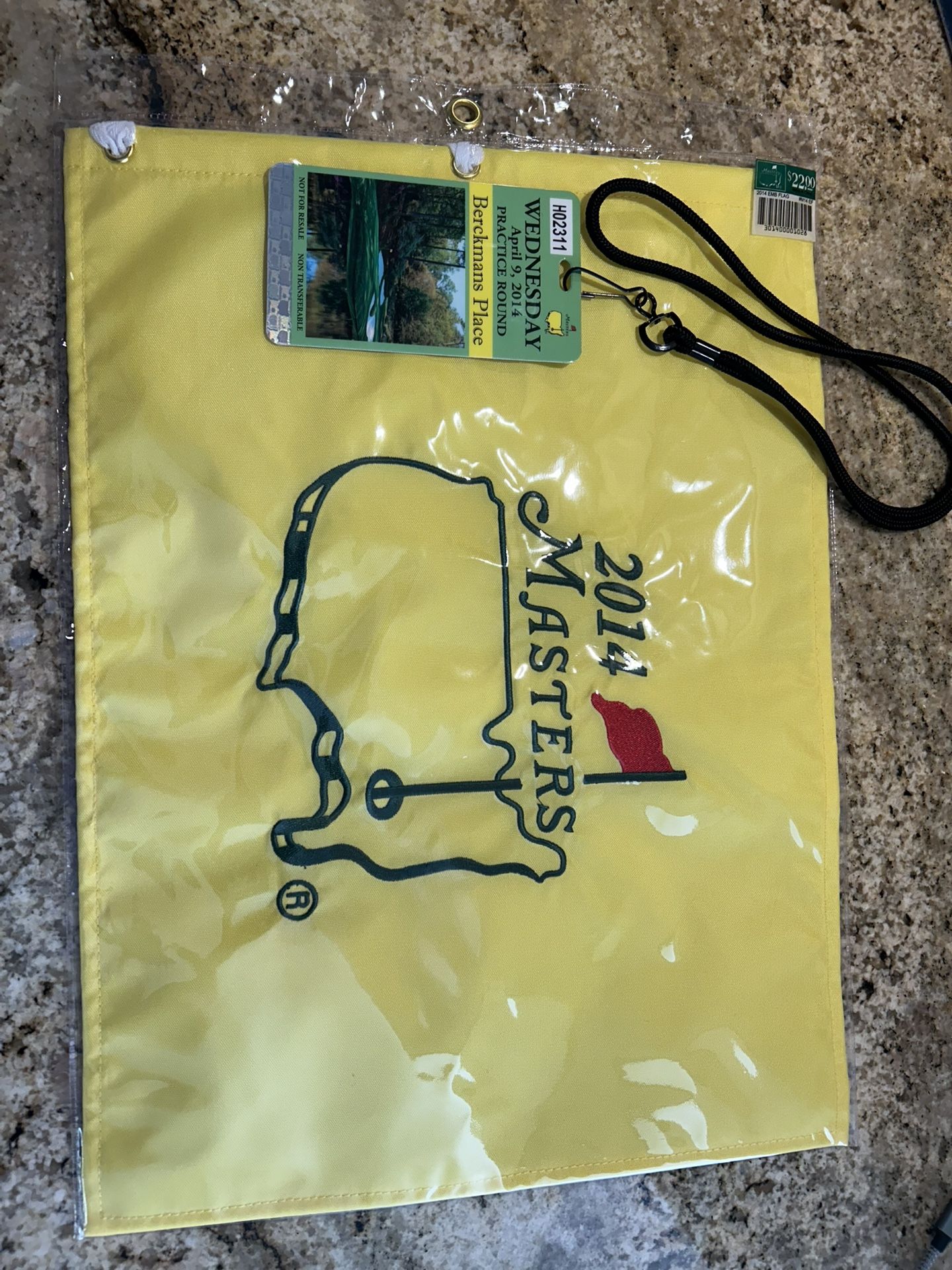 2014 Masters Tee Flag and Berckmans Place pass. Never removed from its bag.
