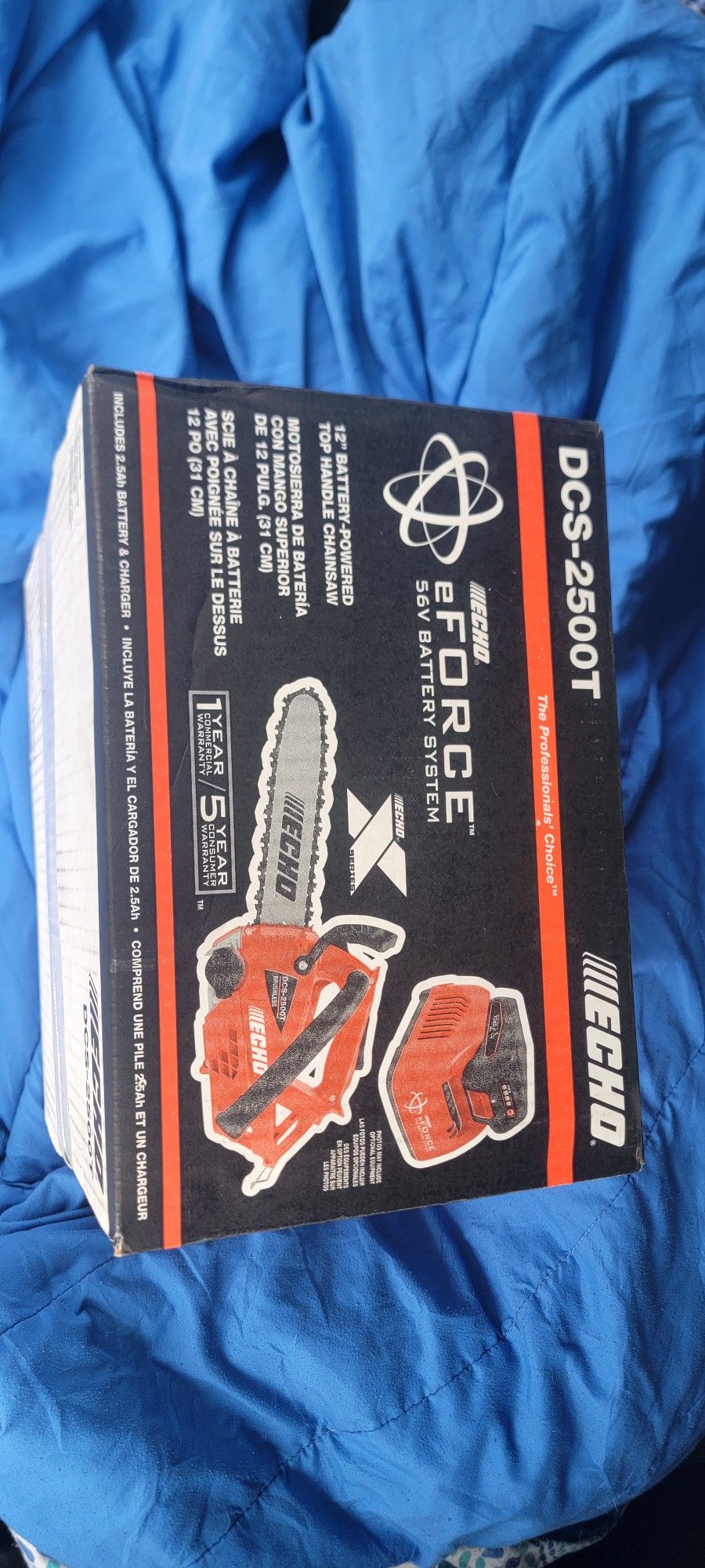 New ECHO 56V 12 in. X Series Chainsaw with 2.5 Battery and Charger DCS-2500T