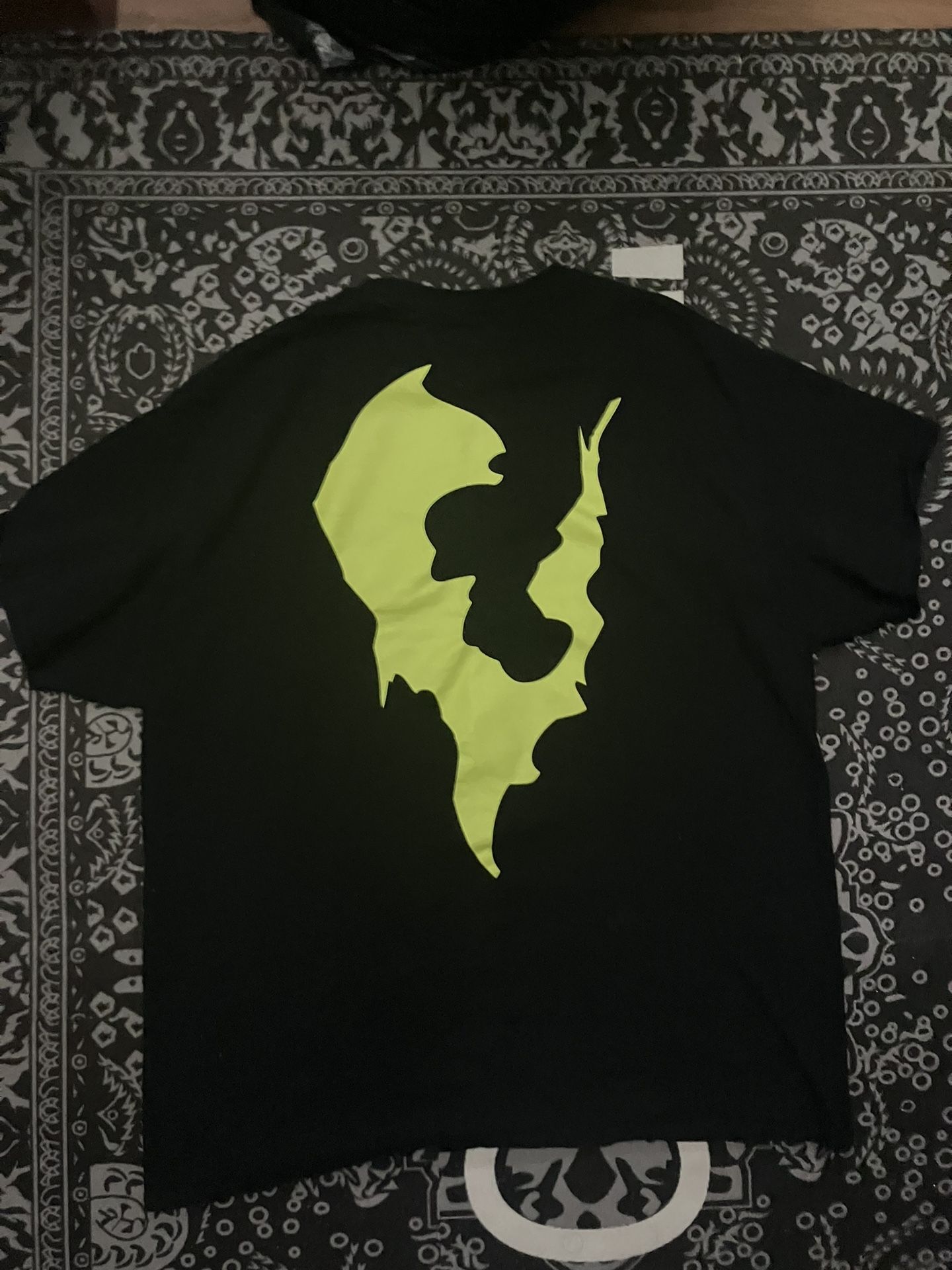 Size XL Worn 1x Fits true to size Comes with OG box and album Looking for $100 firm Must pick up in Alexandria Virginia The color of the graphic looks off due to the camera flash buts it’s like an electric volt yellow.
