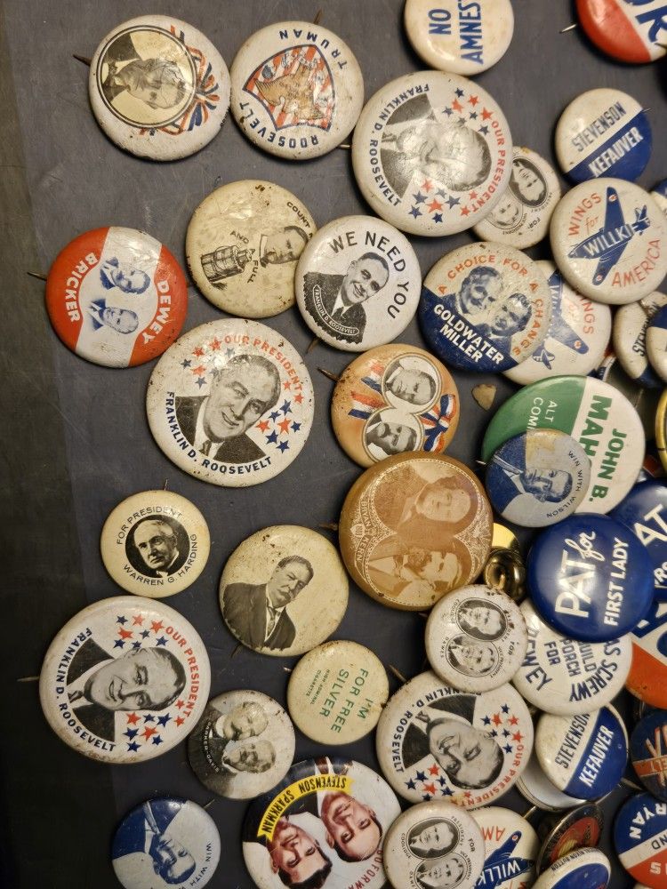 Old political buttons ,a piece of history of the united states. Pick up only.