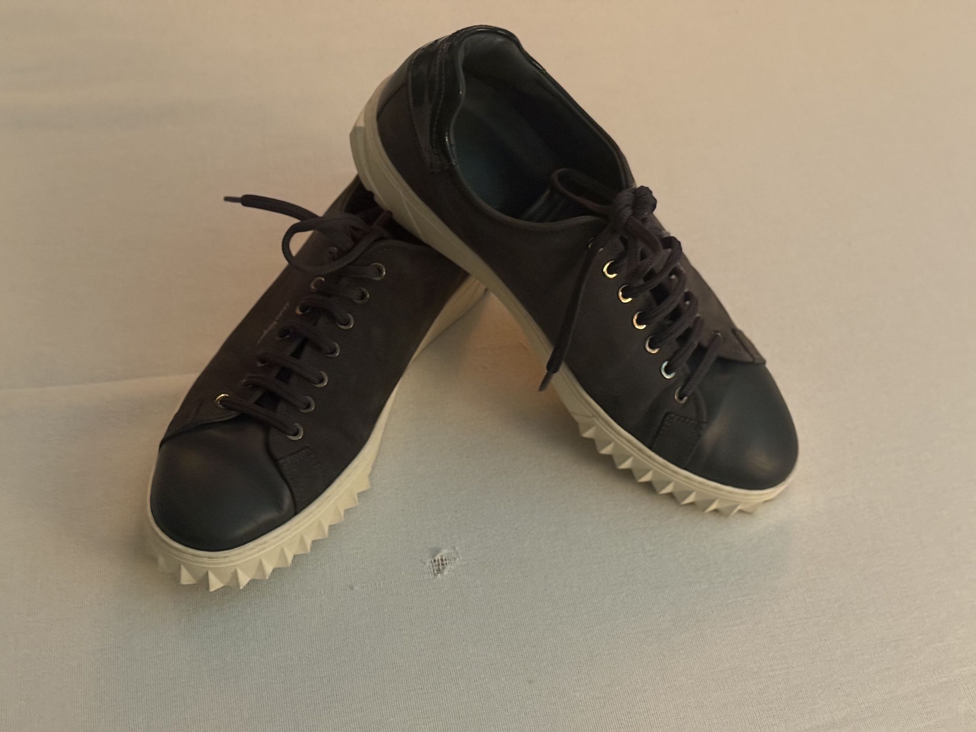 Men’s Ferragamo “Cube” Calfskin Leather Sneakers feature: - Exceptional pre-loved condition - No issues - 100% navy calfskin leather and nubuck atop an off-white rubber outsole in a low-top silhouette, blue cotton laces and a subtle tonal brand element on the outer bridge of each shoe. A custom “Cube” design adds a unique geometric perspective of the shoe when viewed in profile or from the top. - In navy/marine blue - Men’s 10.5US